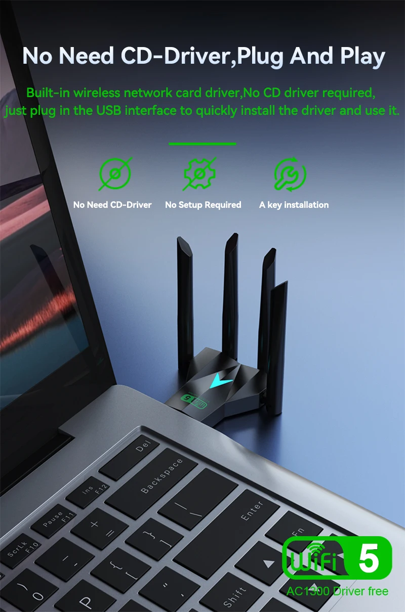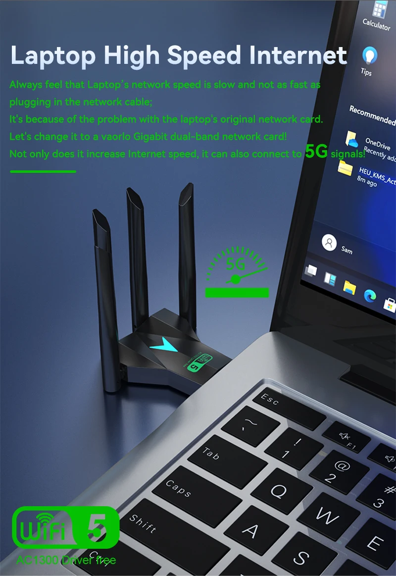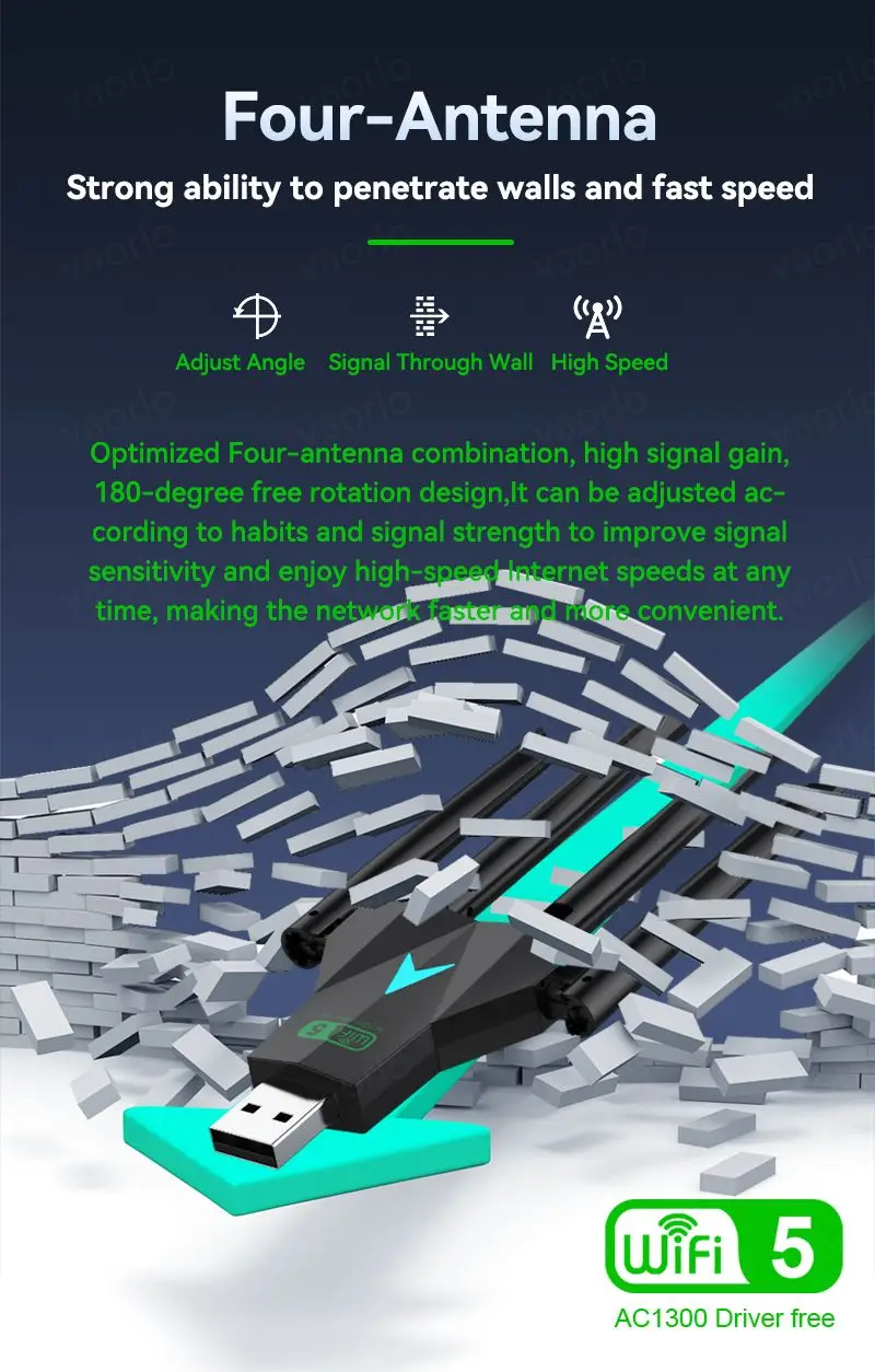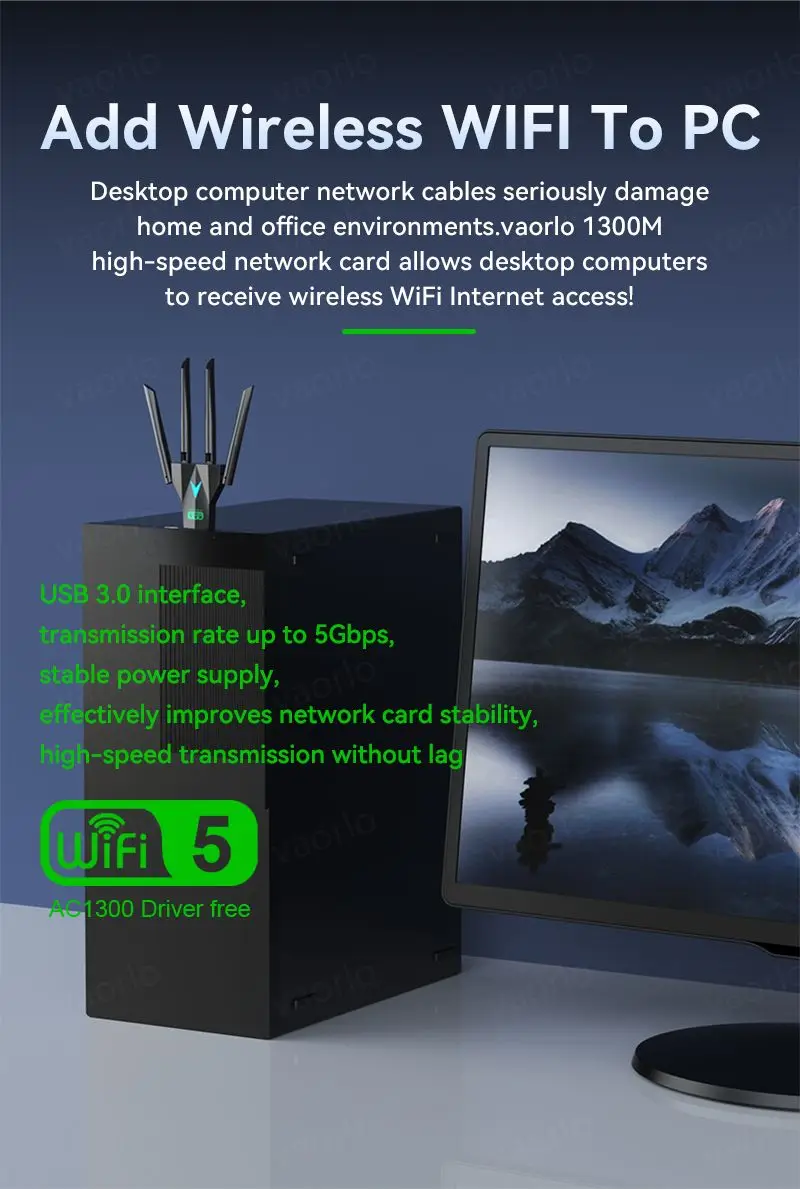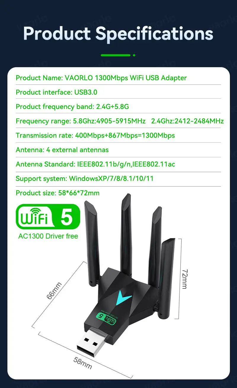 - Marca/Modelo: VAORLO 1300Mbps WiFi USB Adapter