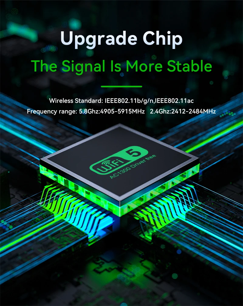 Elimine os problemas de ligação lenta e instável com o Adaptador WiFi USB 3.0 Dual Band VAORLO de 1300Mbps. Este dongle potente e fácil de usar é a solução perfeita para atualizar a conectividade sem fios do seu PC de secretária ou portátil antigo, oferecendo velocidades de internet ultra-rápidas e uma cobertura de sinal fiável em toda a casa.