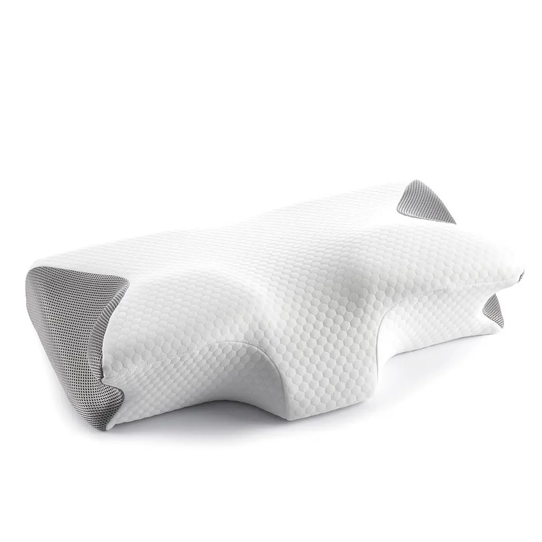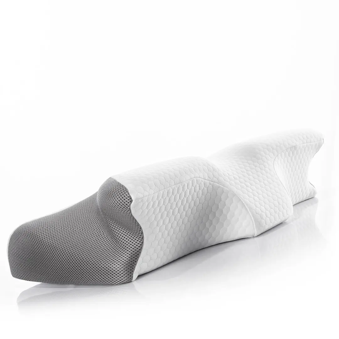 Uma almofada cervical desenhada com contornos ergonómicos para proporcionar um apoio ótimo à cabeça, pescoço e mãos. A sua espuma viscoelástica de alta densidade adapta-se à forma do corpo para reduzir a pressão cervical, ajudar a manter a postura correta durante o sono e aliviar dores no pescoço.