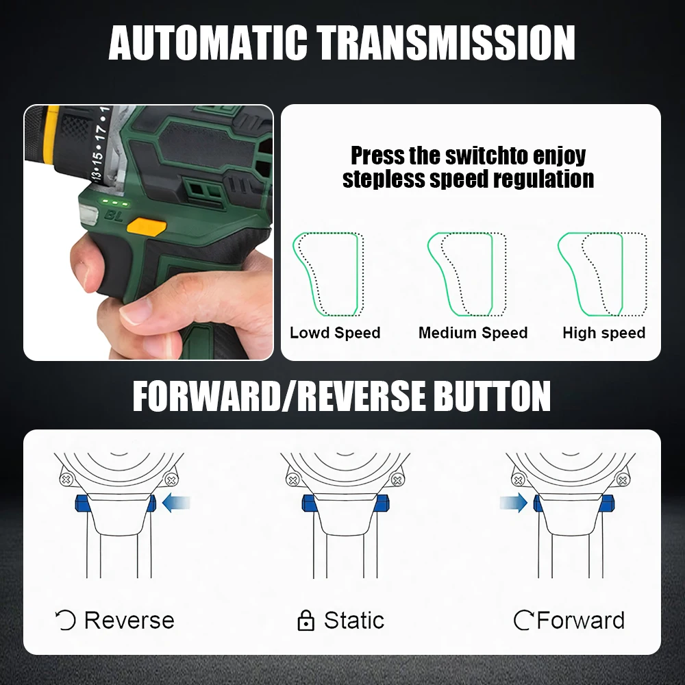 A Aparafusadora/Furadeira de Impacto sem Escovas TKKEACE redefine a eficiência e a durabilidade das ferramentas sem fio. Equipada com um motor brushless (sem escovas) de última geração, ela oferece maior potência, vida útil significativamente estendida e um funcionamento mais silencioso e suave. Com 23 níveis de torque ajustáveis e um mandril de catraca em metal de 3/8", é a ferramenta ideal para quem exige controle absoluto e robustez em projetos DIY avançados e aplicações profissionais leves.