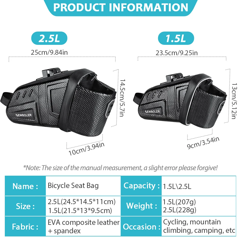 Bolsa de Selim para Bicicleta NEWBOLER 1.5L/2.5L - Impermeável, com Faixa Refletora, para MTB e Bicicleta de Estrada, Bolsa de Ferramentas
