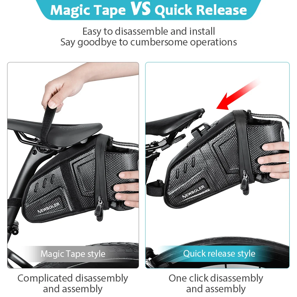 Esteja preparado para qualquer imprevisto na estrada ou no trilho. A Bolsa de Selim NEWBOLER é a solução minimalista, eficaz e fiável para levar o seu kit de sobrevivência ciclista em todas as aventuras.