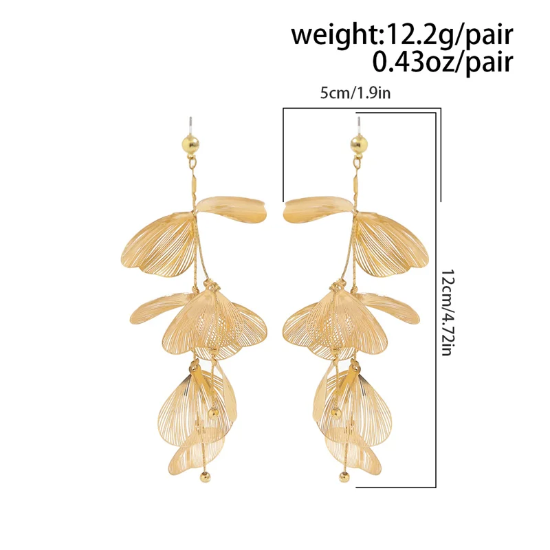 Confeccionados em liga de cobre com um acabamento dourado vintage envelhecido, oferecem um brilho quente e sofisticado que complementa uma variedade de tons de pele. Com um peso surpreendentemente leve de apenas 12.2g, garantem conforto mesmo com o seu tamanho impactante.