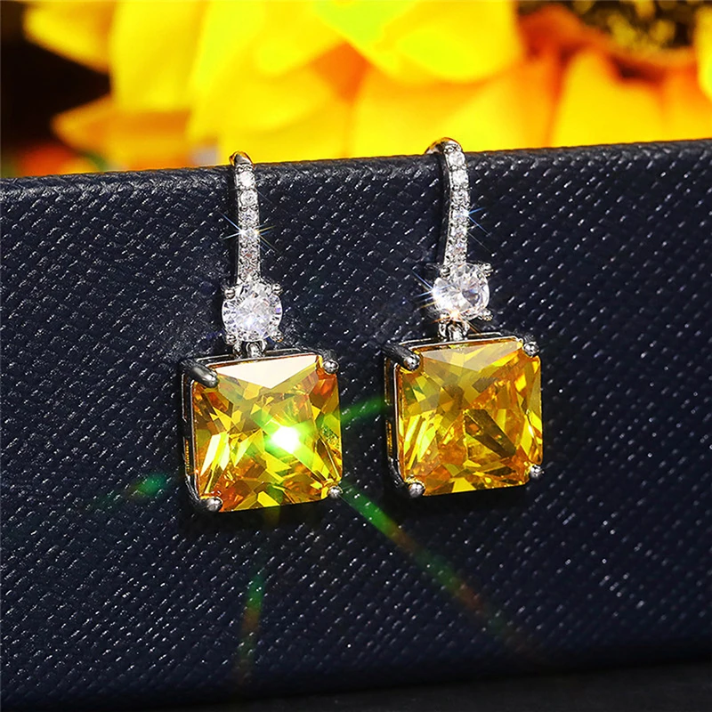 Brincos Pendentes Versáteis com Zircónia Cúbica | Amarelo e Branco Brilhante | Para Festa, Noivado ou Dia a Dia