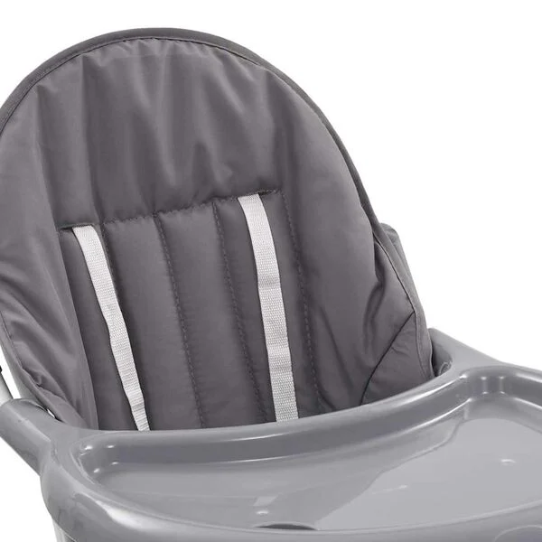 Foi construída com uma estrutura de aço e plástico forte para lhe ser atribuída longevidade e robustez, oferecendo um excelente apoio ao seu pequenito. O assento acolchoado com estofamento macio e o arnês de 5 pontos proporcionam um maior conforto e segurança ao seu bebé na hora das refeições. A bandeja para alimentos inserida é fácil de limpar com um pano húmido. Pode ser configurada em apenas alguns segundos e é fornecida com um apoio de pés ajustável para os pequenos pezinhos.