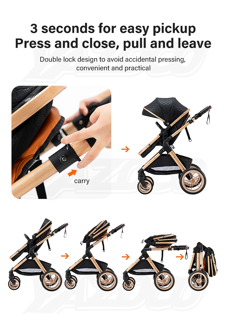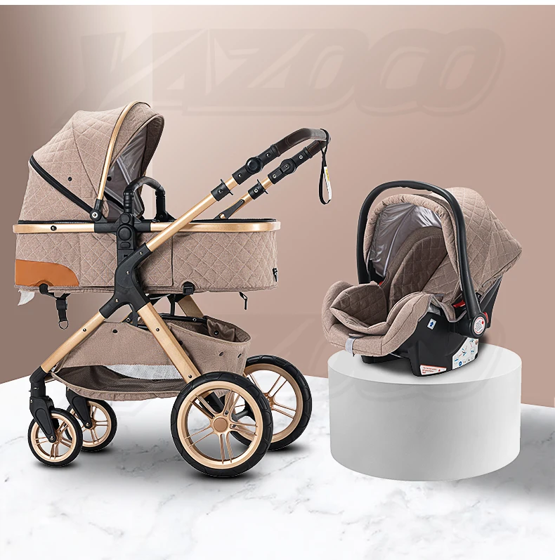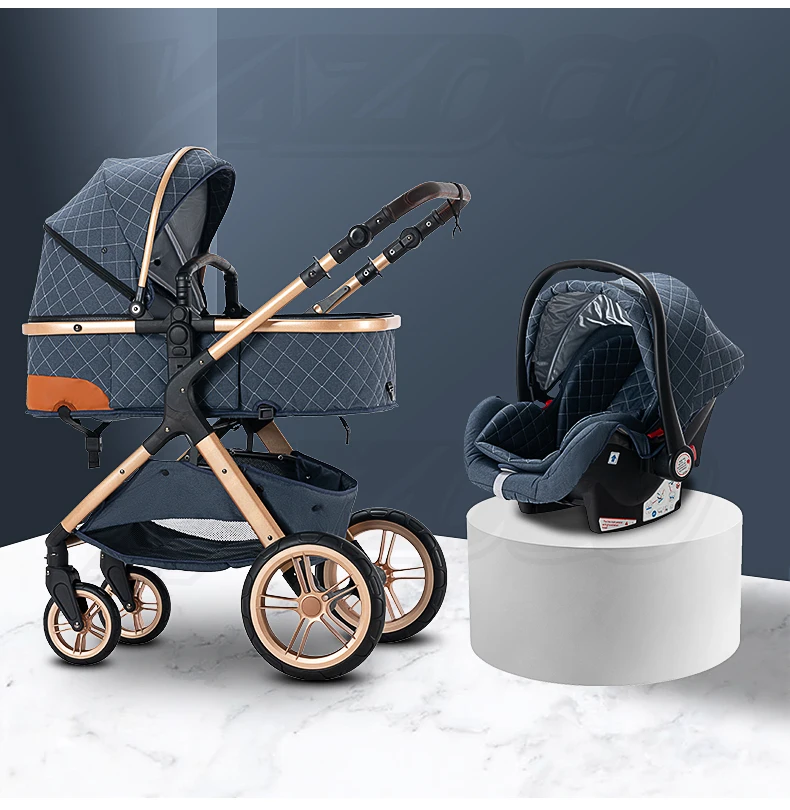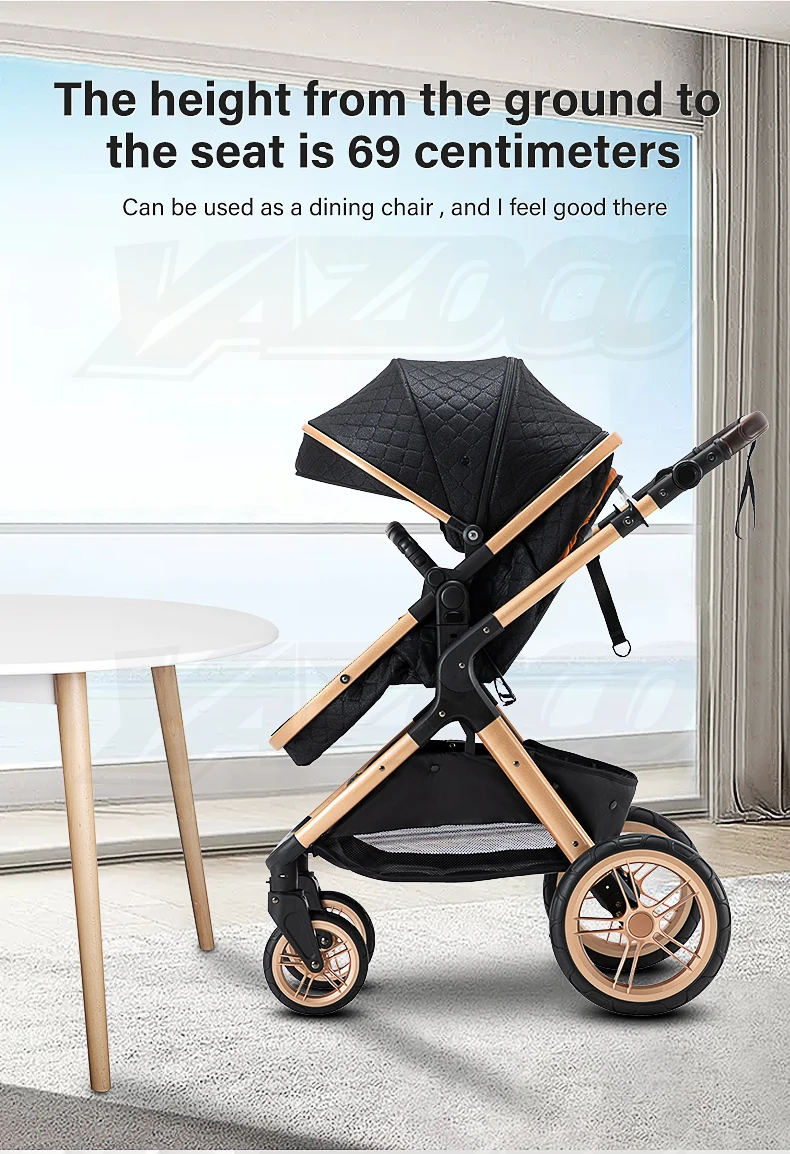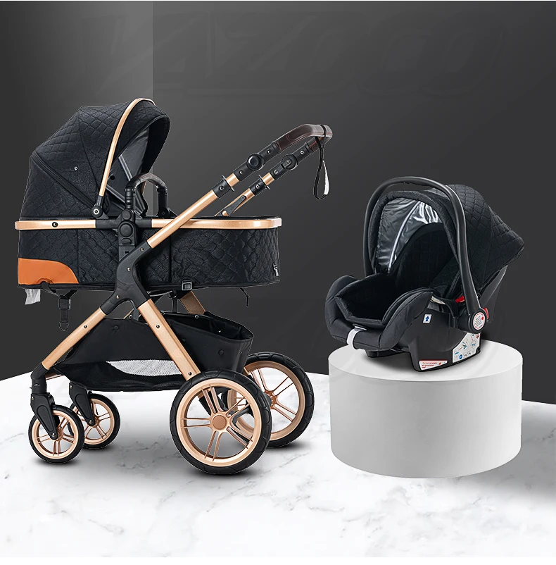 Baby Stroller 3 in 1 Portable Travel Luxurious Baby Carriage High Landscape Fold Pram Aluminum Frame Multifunctional Stroller