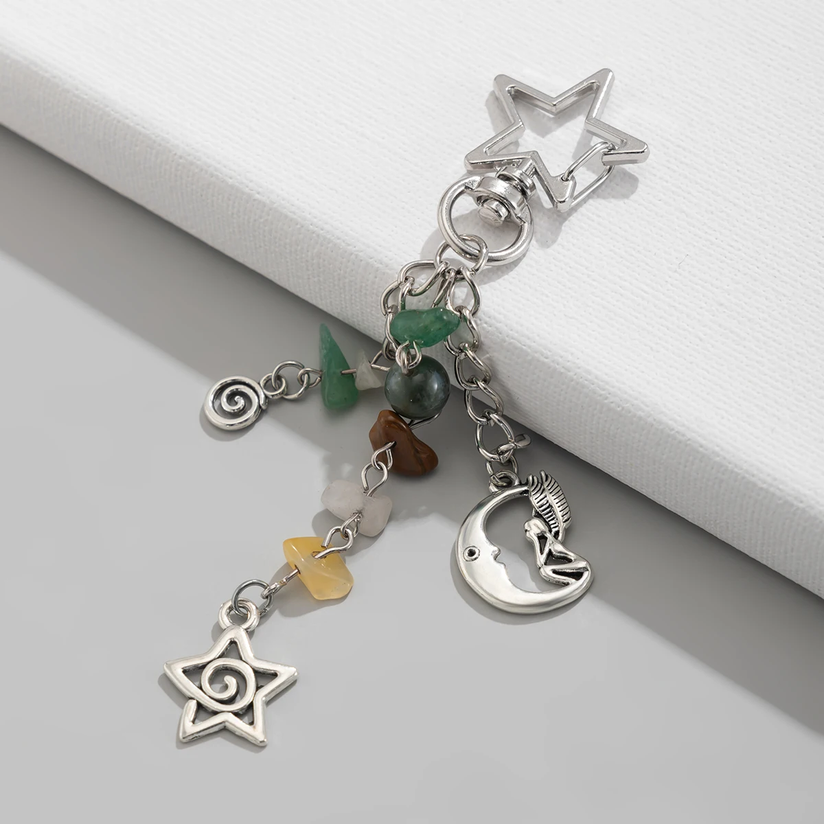 Chaveiro Decorativo Ingemark - Pingente Estrela, Sol, Lua, Contas de Vidro, Romântico, Presente Casal