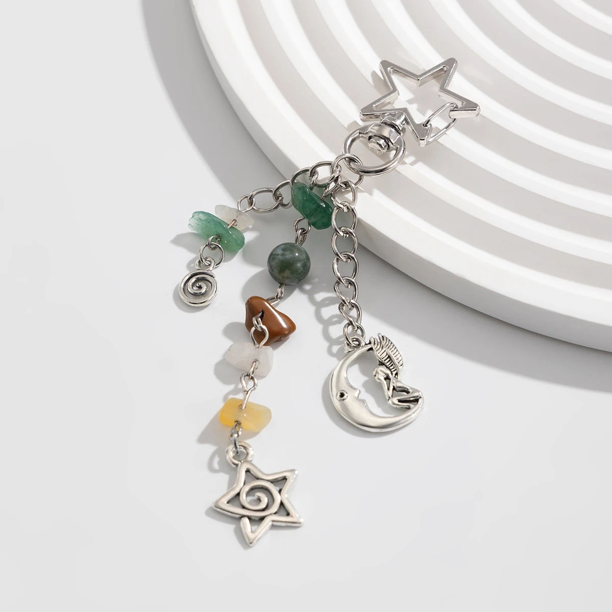 Adicione um toque de magia e personalidade às suas chaves com o Chaveiro Decorativo Ingemark. Mais do que um simples utilitário, este é um acessório de estilo que combina símbolos celestes atemporais – estrelas, um sol radiante e uma lua – com encantadoras contas de vidro e pedra numa corrente delicada.