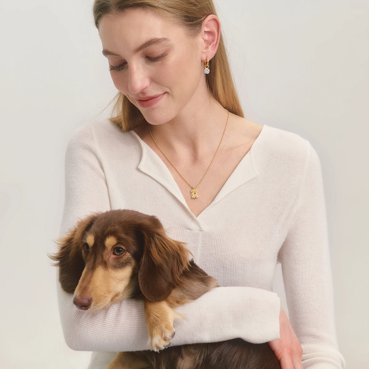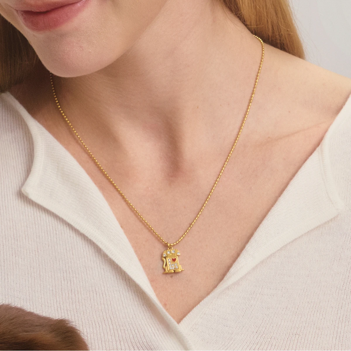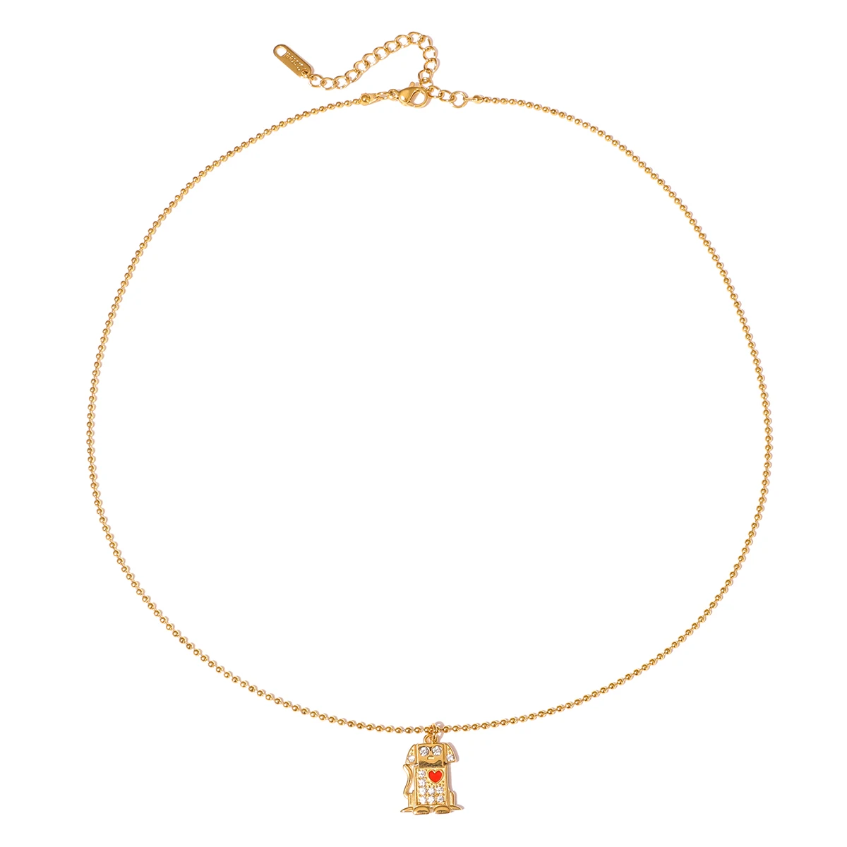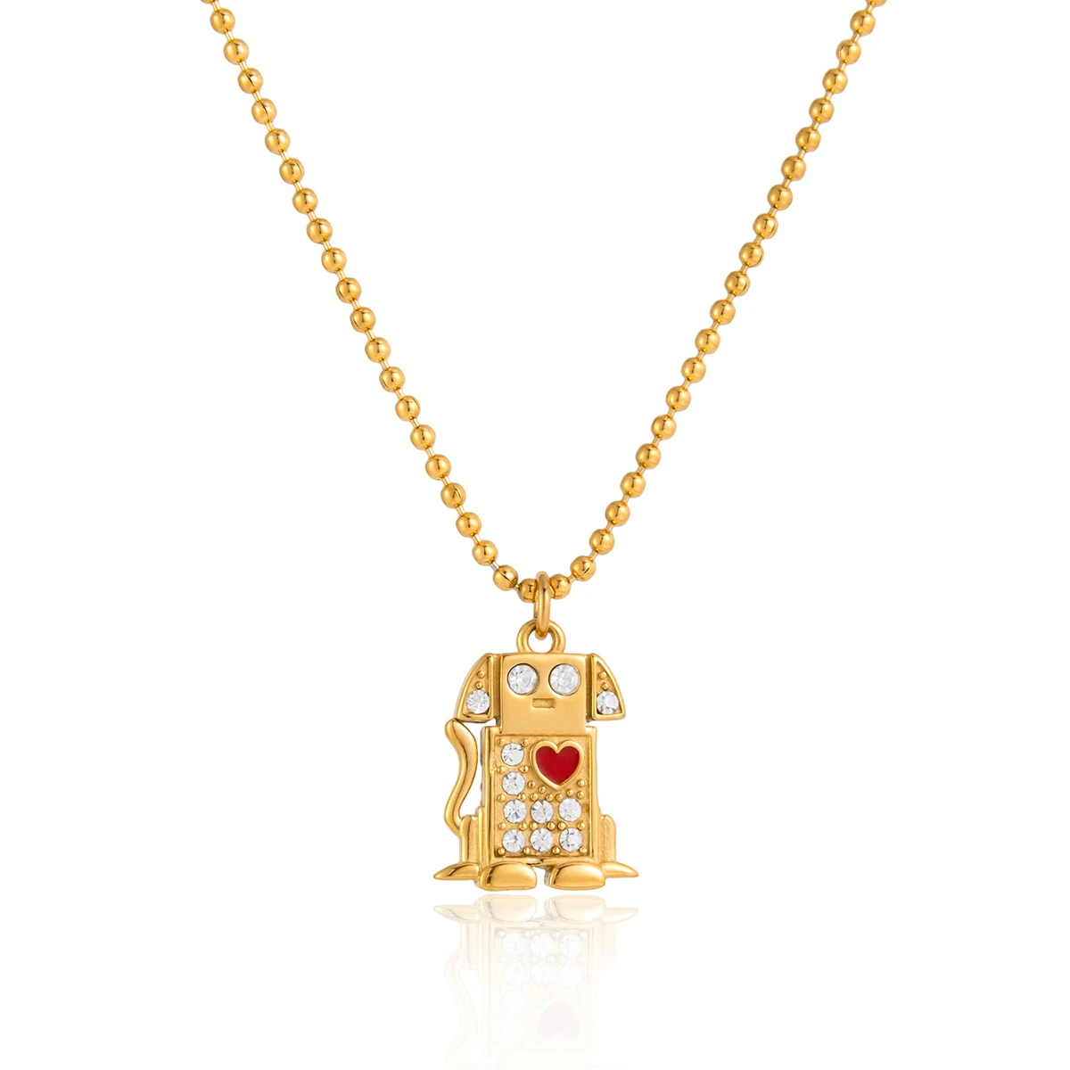 Colar Coração com Cachorro e Gota de Óleo Vermelho | Colar Feminino em Aço Inoxidável com Strass Branco - Presente Romântico