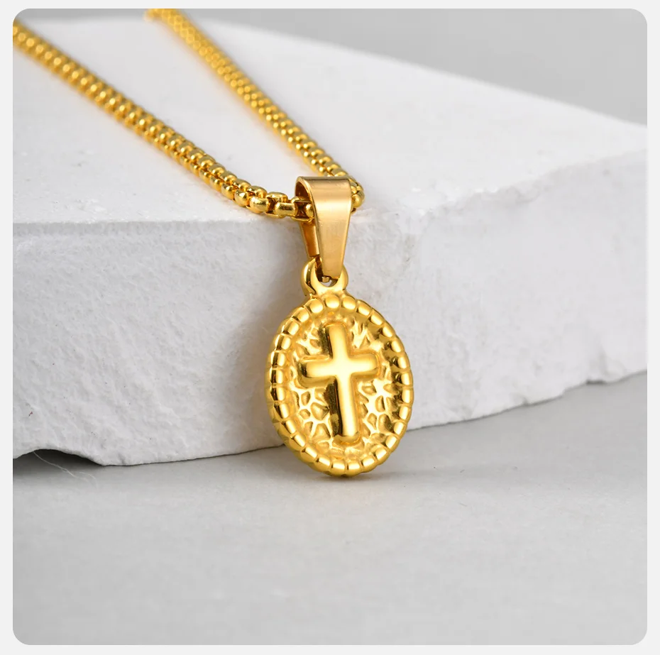 Mais do que um acessório, uma expressão de fé e estilo. Este colar VNOX combina o simbolismo atemporal da cruz com a durabilidade moderna do aço inoxidável hipoalergénico, tornando-o seguro e confortável para uso 24/7. O seu design delicado e ovalado, disponível em três cores clássicas, faz dele uma peça verdadeiramente unissex que se adapta a qualquer look, do casual ao formal. Embalado como um presente pronto a oferecer, é a escolha pensada para celebrar a fé, o amor ou um marco especial na vida de alguém.