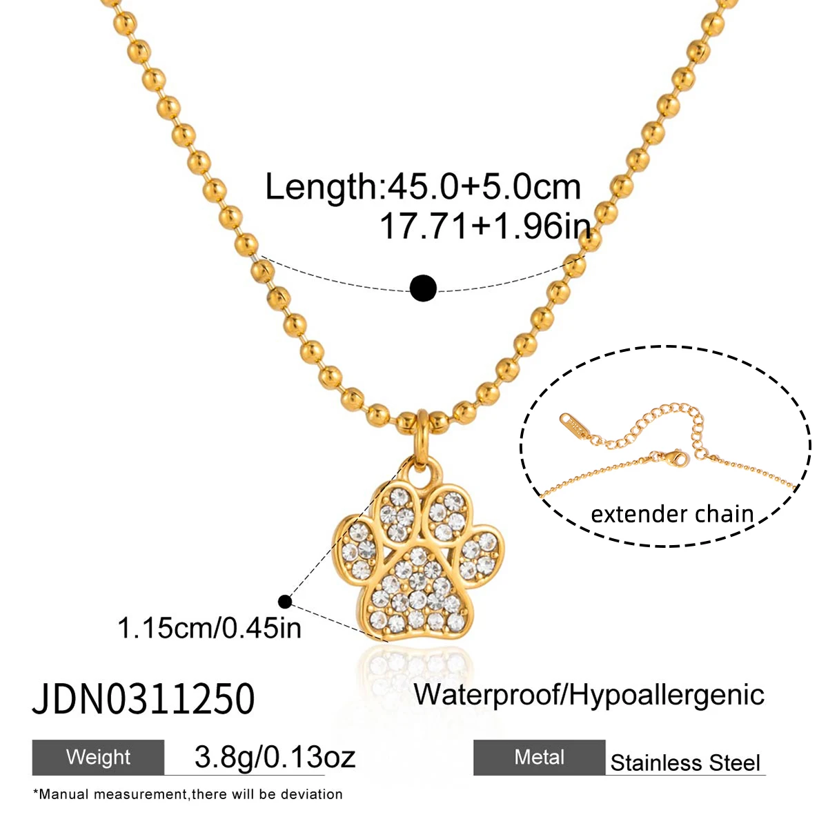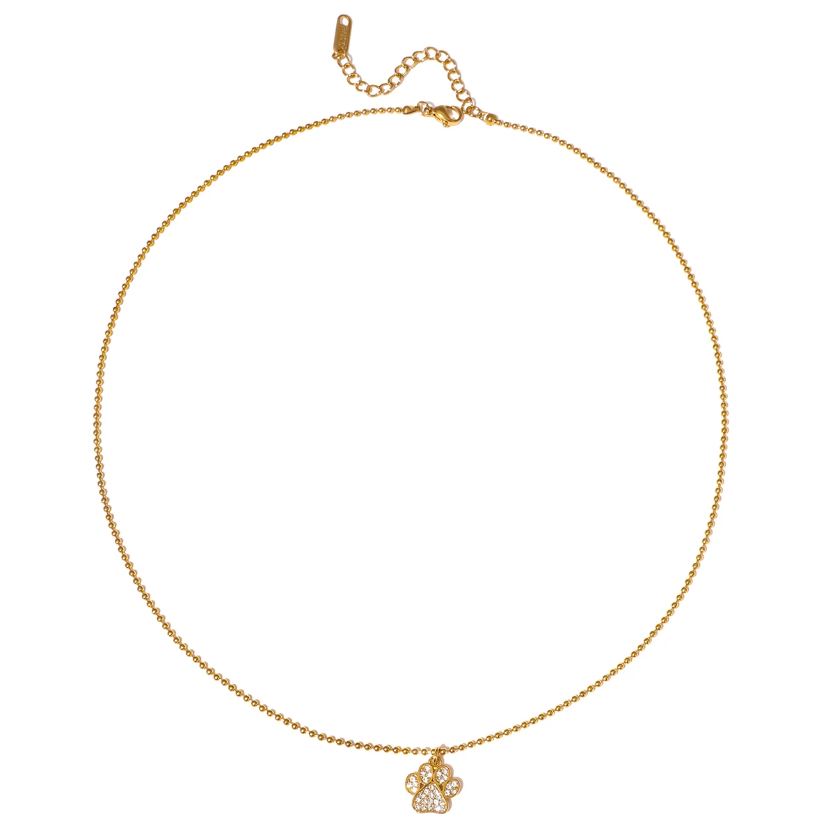 Colar Pingente Garra de Gato Pequena com Strass Branco | Colar Feminino Banhado a Ouro 18K PVD com Corrente de Contas