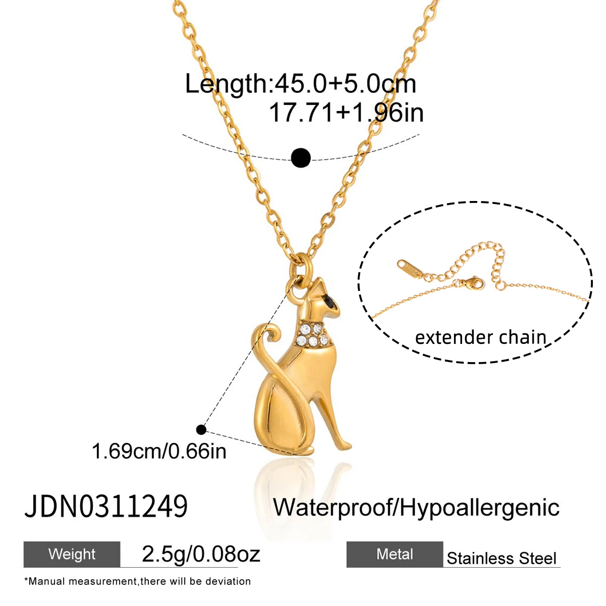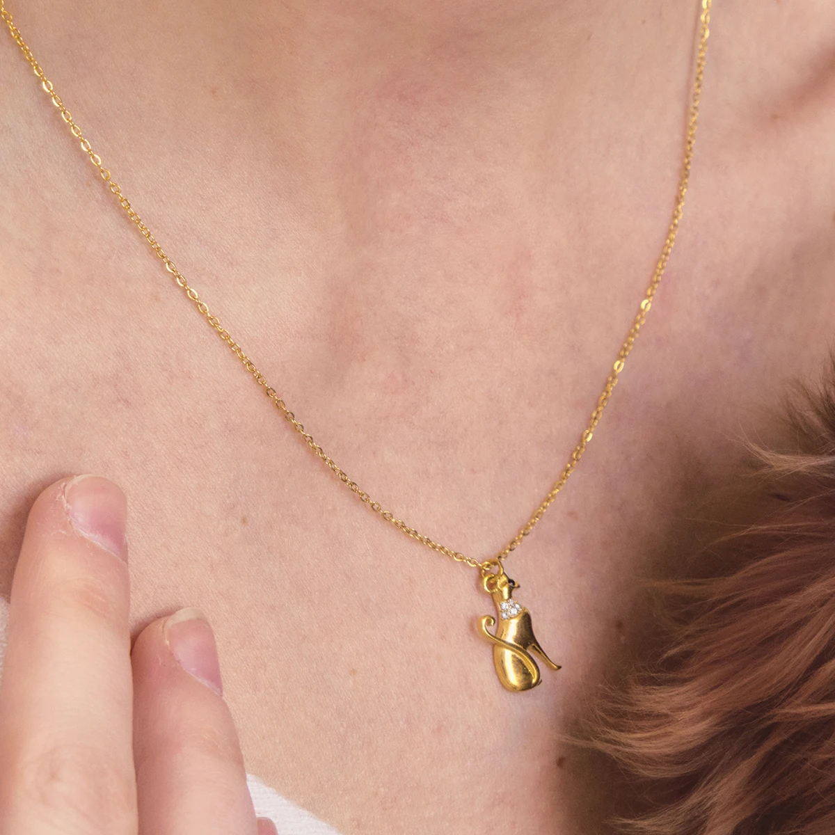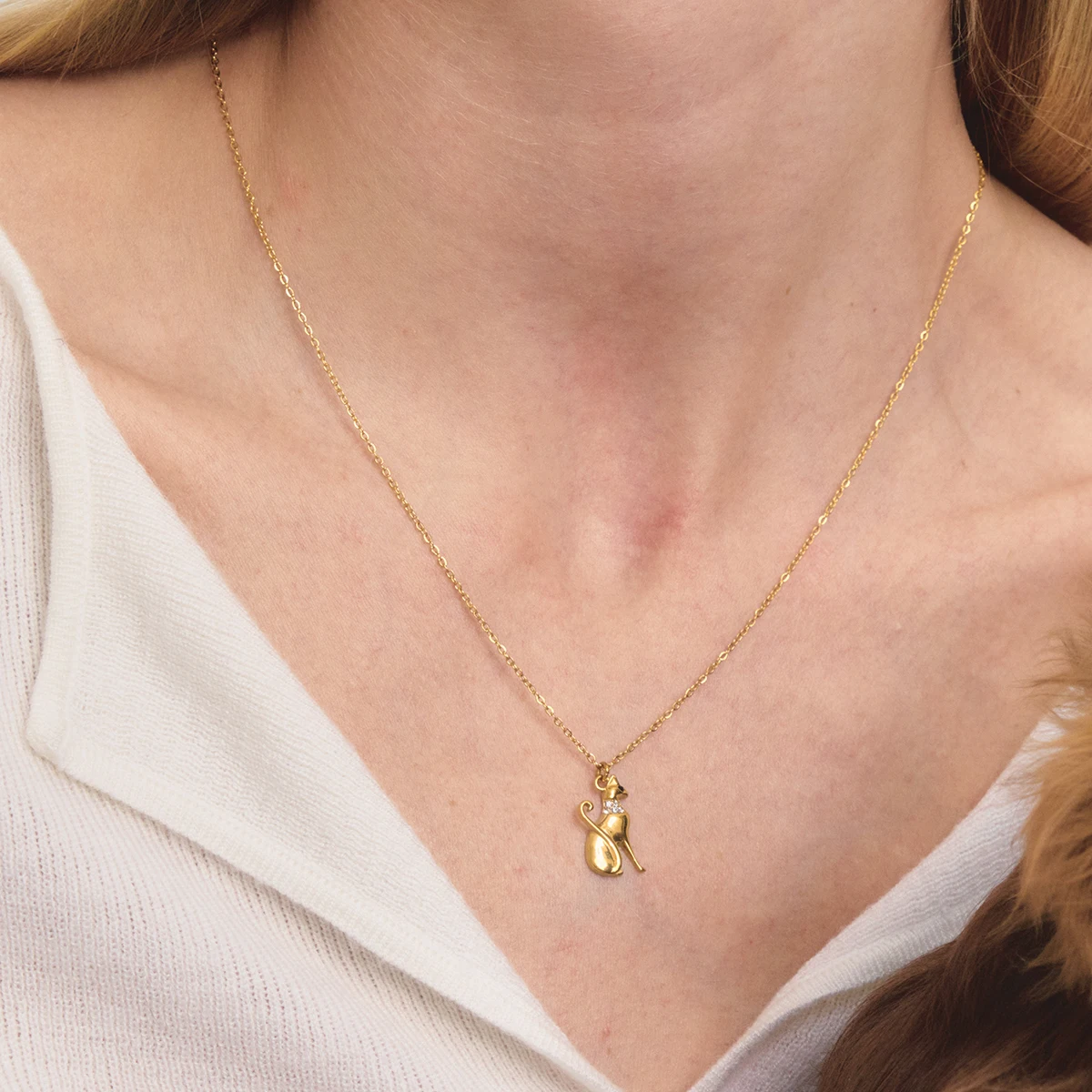 Perfeito para mulheres que amam gatos e apreciam joias com carinho e estilo, este colar complementa tanto looks casuais do dia a dia quanto produções mais sofisticadas para ocasiões especiais. O banhamento em PVD garante brilho duradouro e resistência à oxidação, tornando esta peça um acessório fashion para presentear ou para uso pessoal.