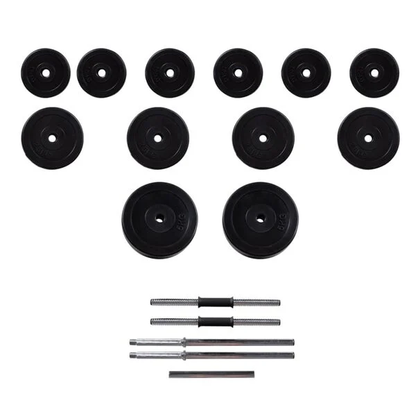 Conjunto de Barras e Halteres 30,5 kg | Kit Completo para Ginásio em Casa com 1 Barra, 2 Halteres e 12 Discos