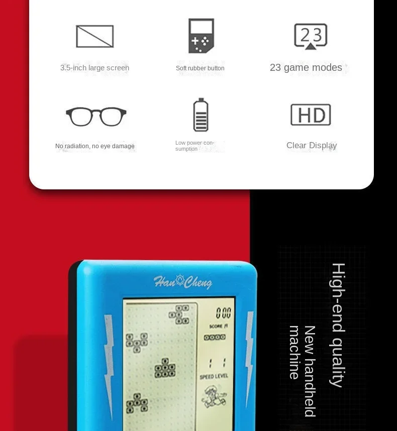 Consola de Jogo Portátil Retro Tetris | Ecrã Grande, 23 Jogos Clássicos 80/90 | Para Adultos e Crianças