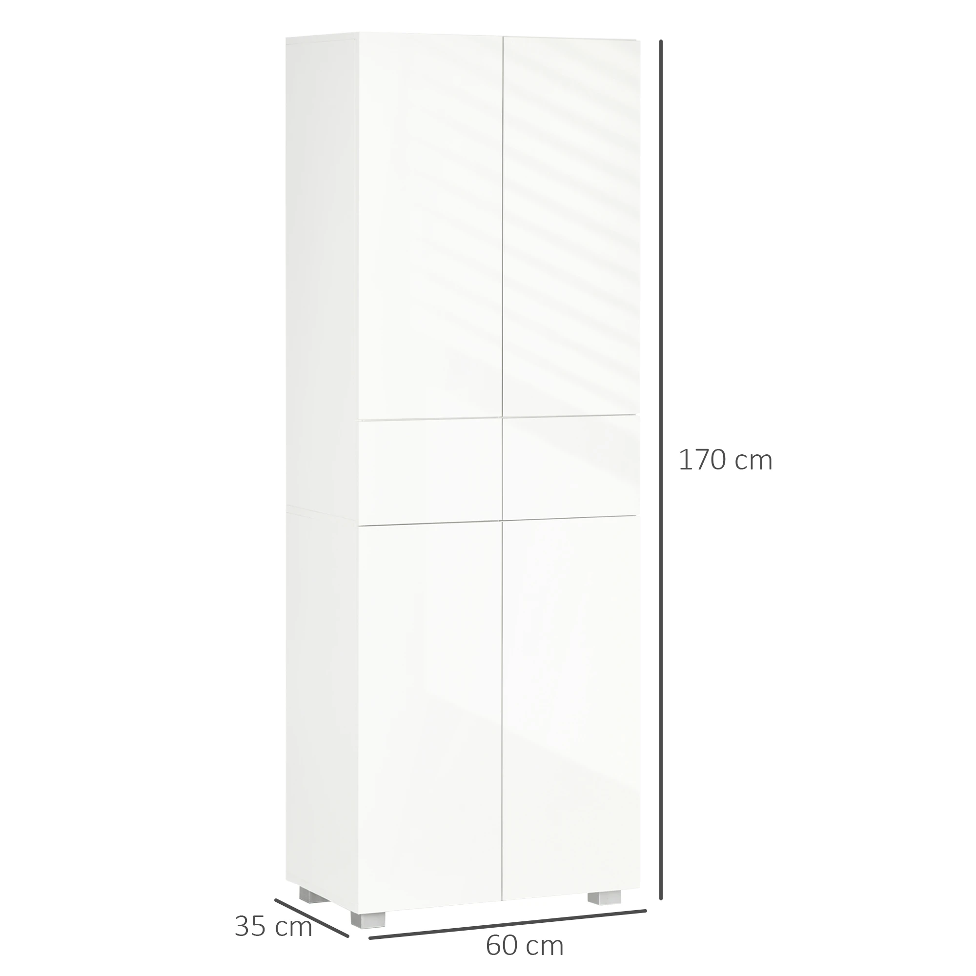 Kitchen Auxiliary Cabinet with 4 Doors and 2 Drawers | Push-Open System, Adjustable Shelves | 170cm Glossy White