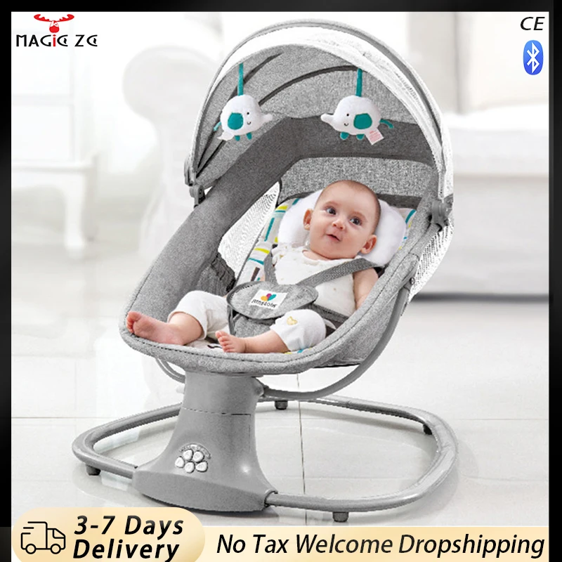 - Intelligent Automatic Rocking: 5 gentle rocking speeds to soothe baby, activated by remote control or Bluetooth.