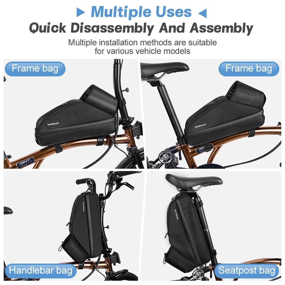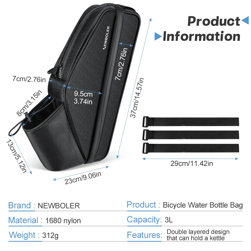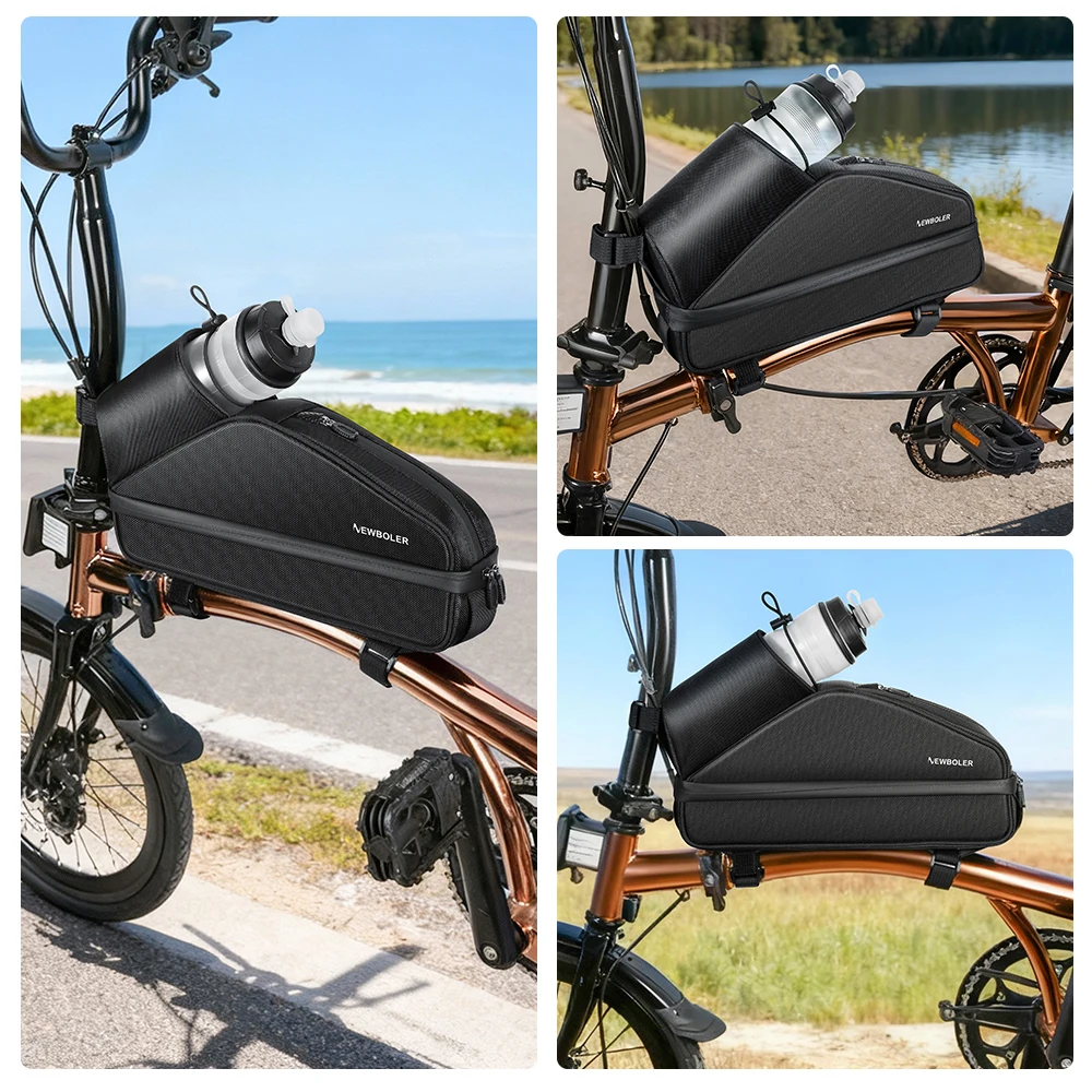 NEWBOLER BAG068 Bicycle Frame Bag - 3L, Foldable, Waterproof, with Bottle Pocket, for MTB and Urban Use
