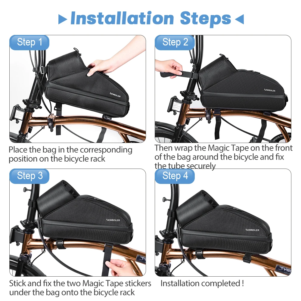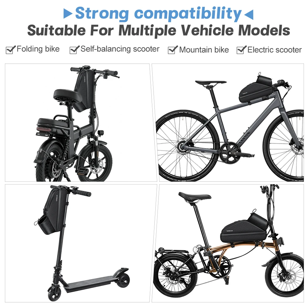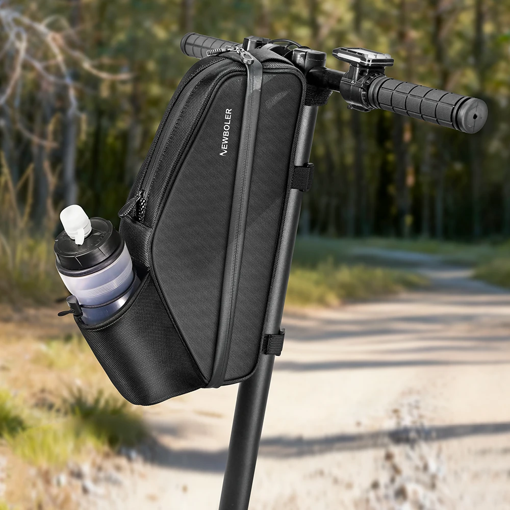 Keep your essentials organized and protected with the NEWBOLER BAG068 Front Frame Bag . This practical bag is designed to be mounted on the top or front tube of your frame , offering 3 liters of capacity to store snacks, tools, cell phone or an extra layer of clothing during your MTB, city bike or electric scooter rides.