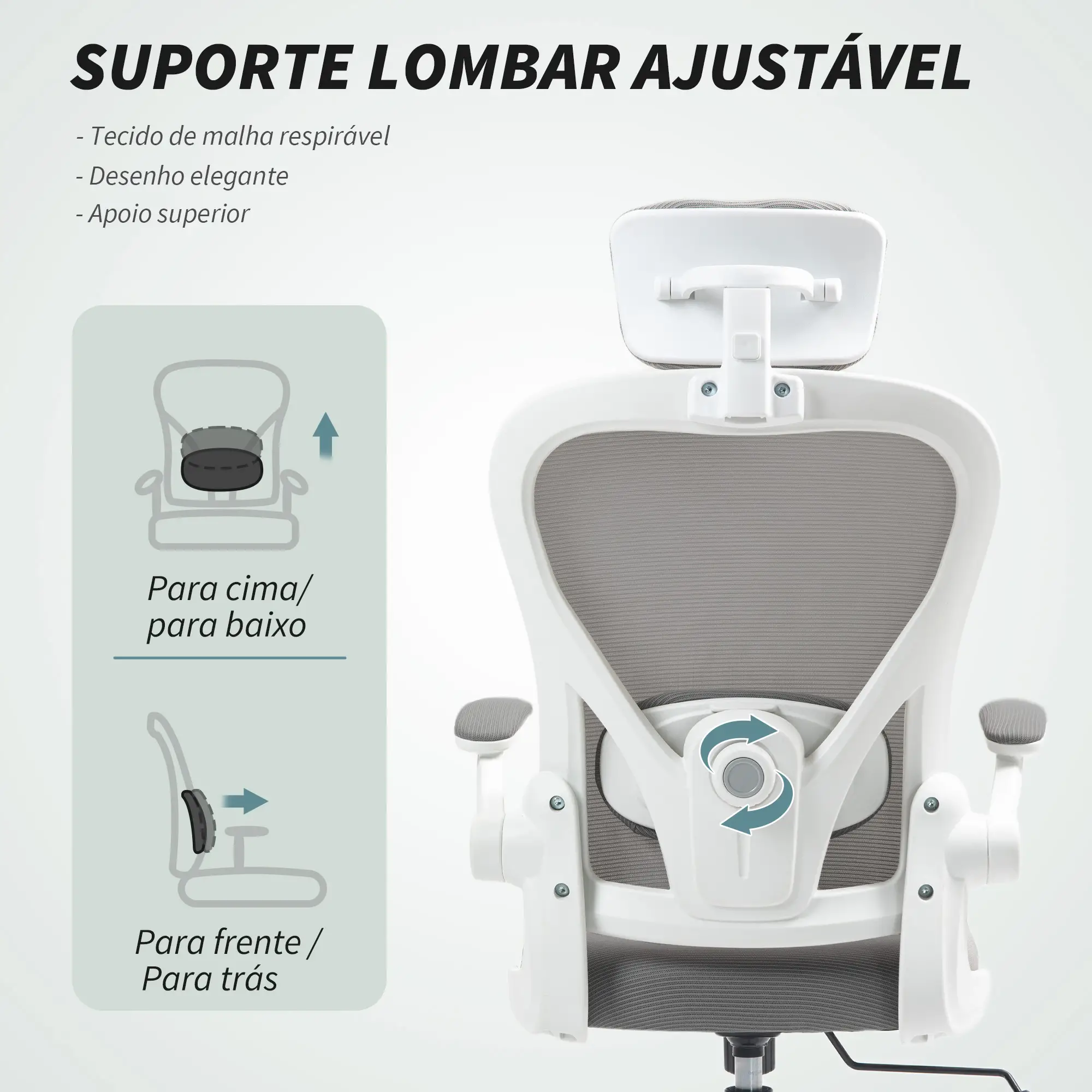 Introducing the office chair that combines advanced ergonomic technology with a practical and modern design . With fully adjustable head and lumbar support and breathable mesh upholstery , it's the perfect solution for those seeking personalized comfort and lasting support during long hours of work or study.