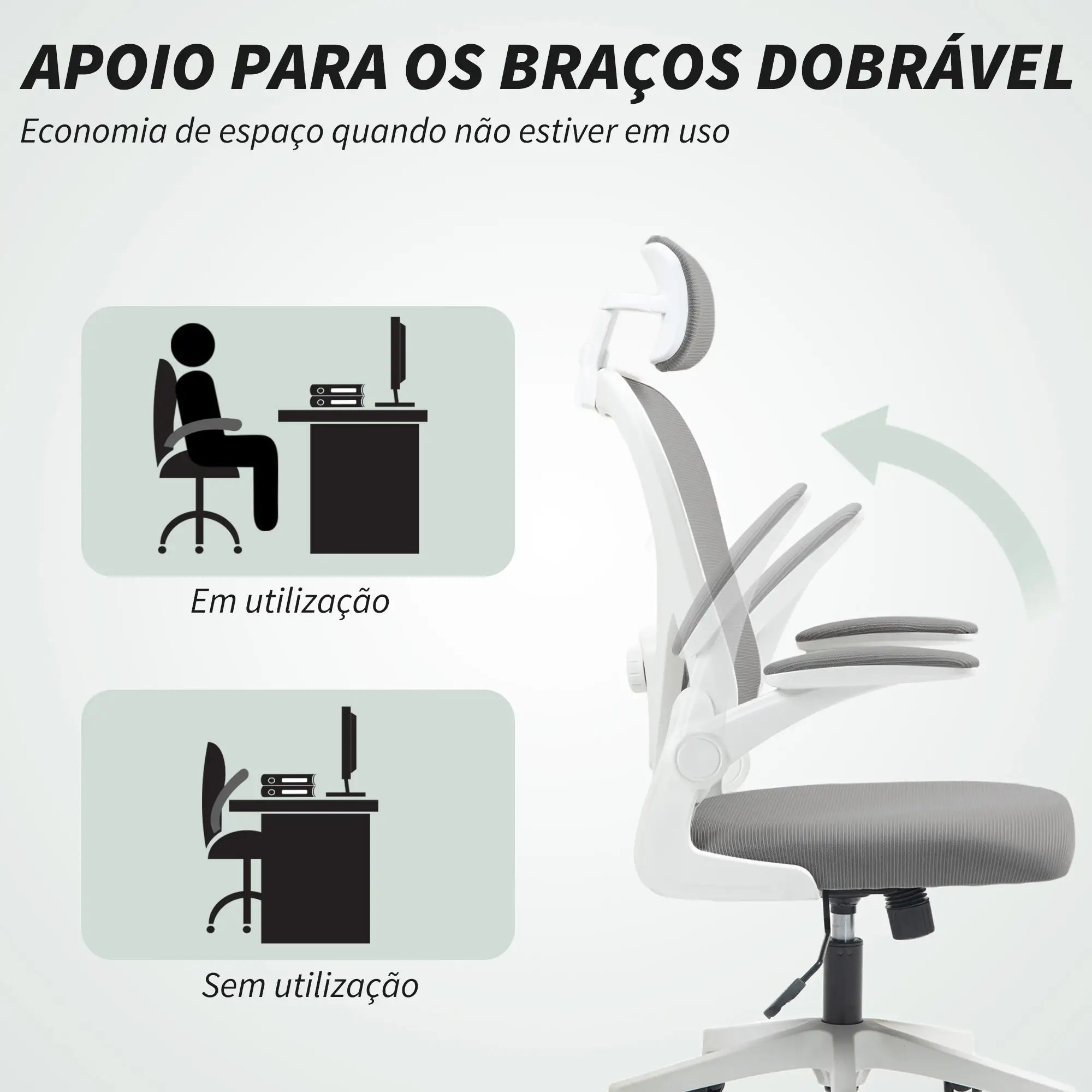 Mesh Office Chair with Adjustable Lumbar and Head Support | Swivel, Folding Arms | Gray