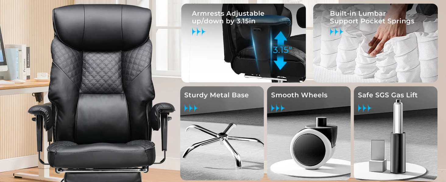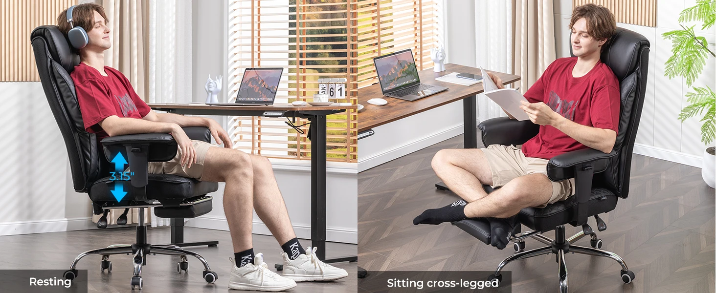 - Retractable Footrest: Extends to provide complete leg rest, ideal for breaks, gaming, or watching movies.
