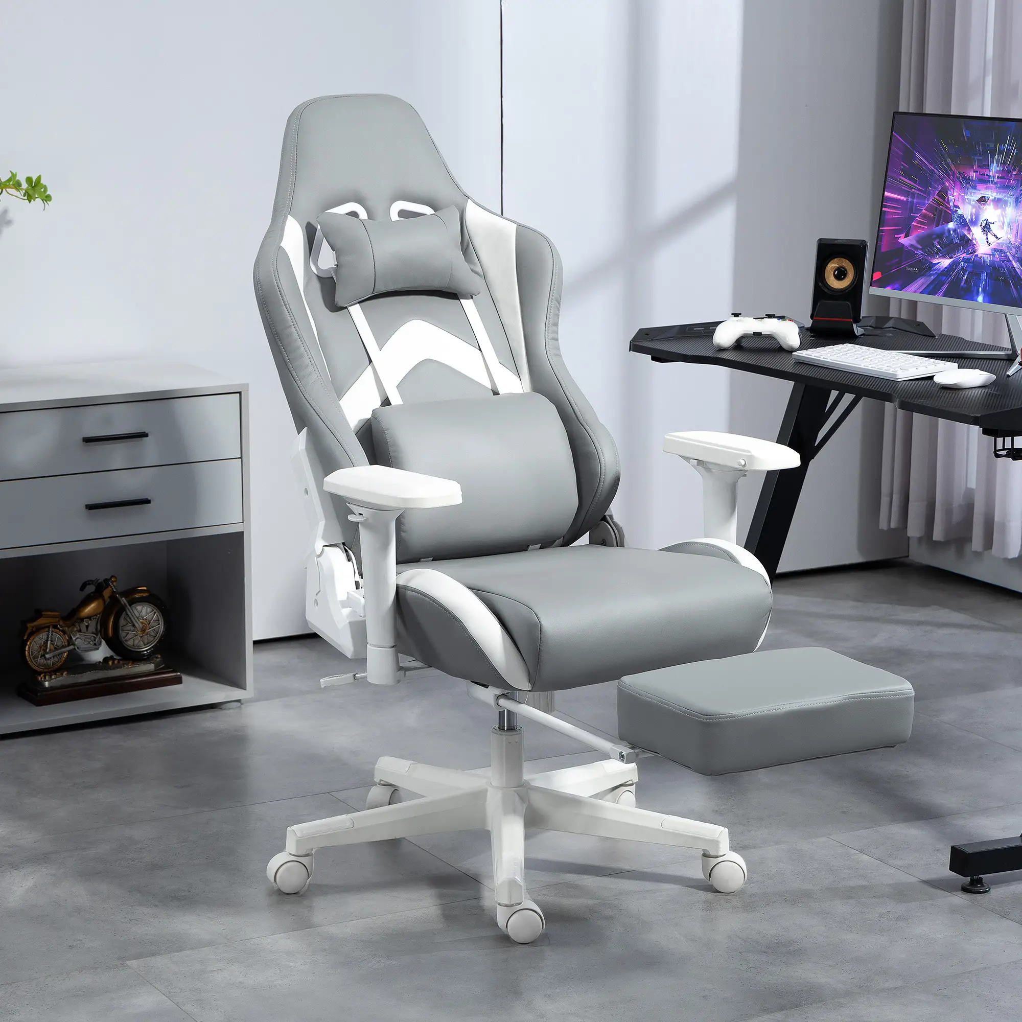 Dominate your gaming sessions, series marathons, or long hours of remote work with the HOMCOM Reclining Gaming Chair . This chair combines an aggressive, sporty design with premium ergonomic features to offer total comfort and adaptable support.