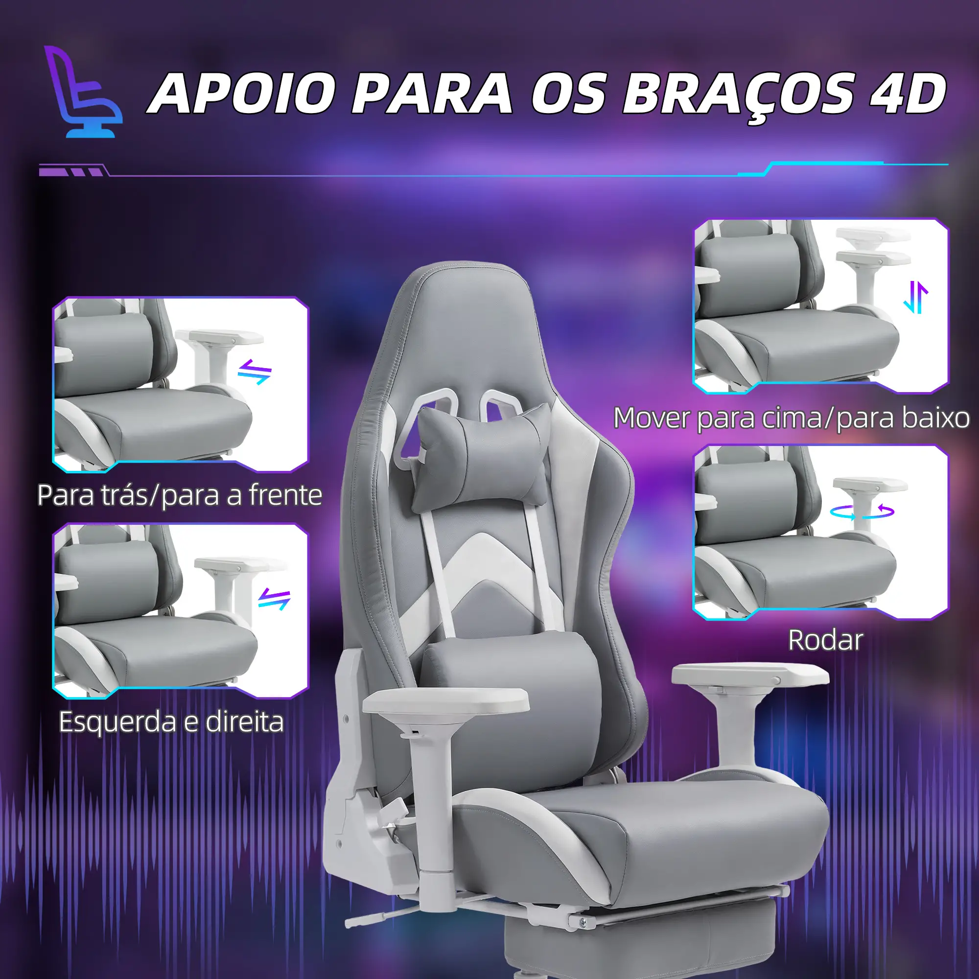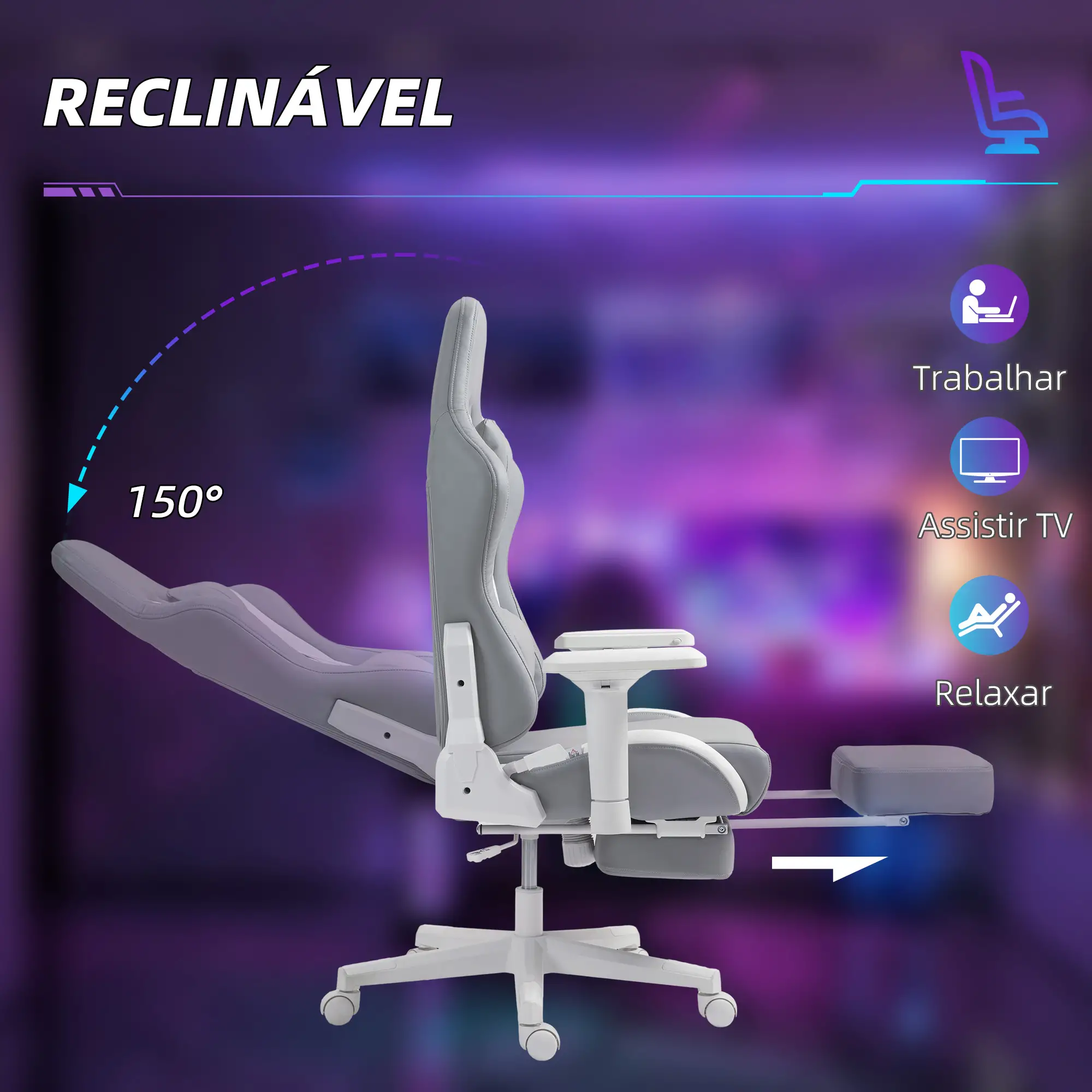 Highlights include the integrated retractable footrest , which extends smoothly to allow for a perfect reclined resting position for breaks between games or moments of relaxation. Adjustable lumbar support and headrest ensure ideal postural alignment, relieving pressure on the back and neck. The backrest reclines up to 180º , allowing you to find the perfect angle for any activity.