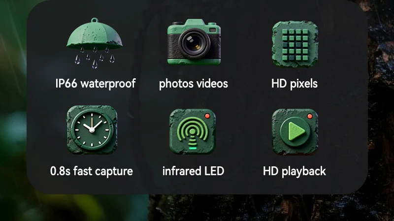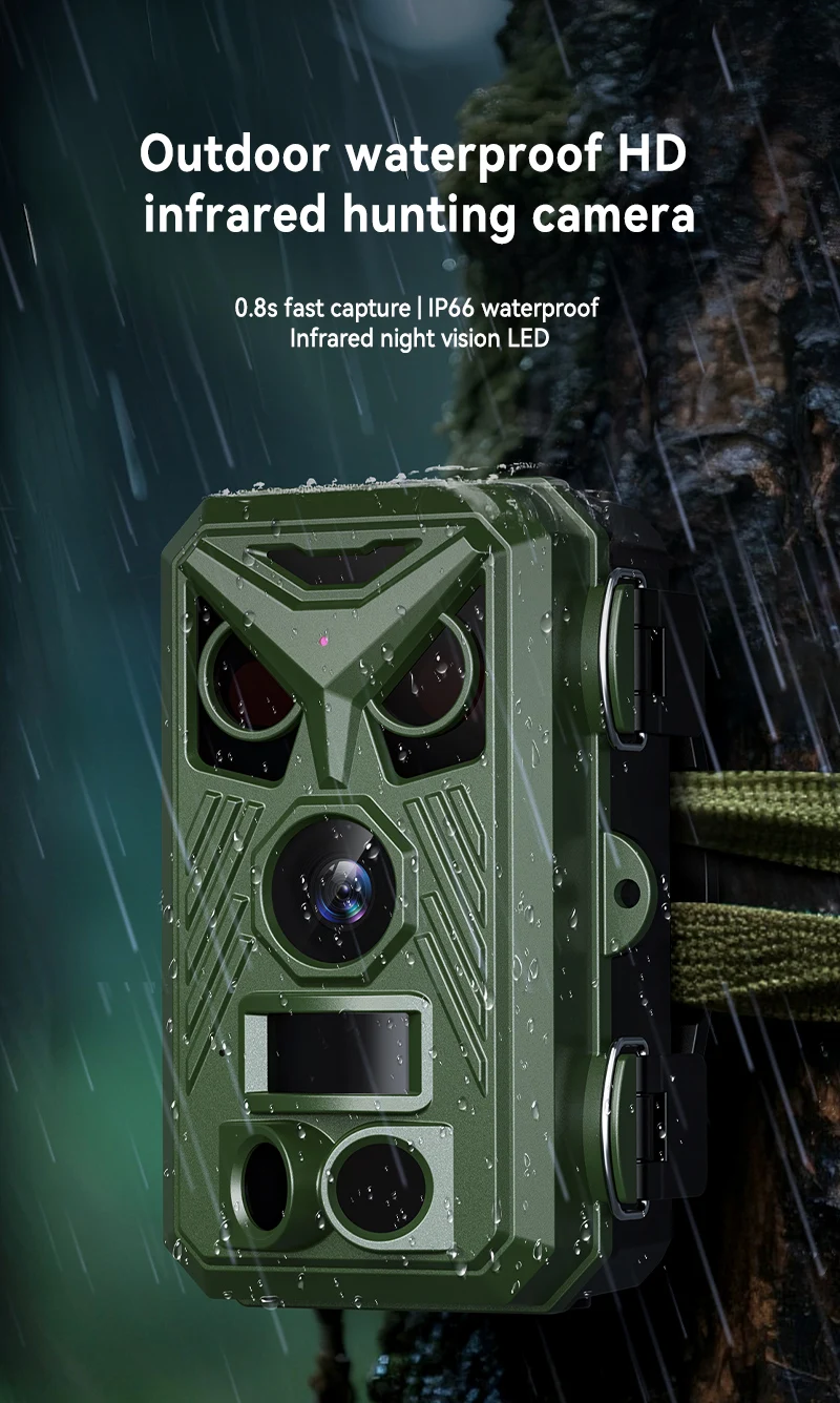 Introducing the D300 Trail Camera , a 4K hunting camera designed for wildlife observation and perimeter security. With an ultra-fast 0.8-second trigger time, long-range night vision, and rugged IP66 construction, it's the ultimate tool for hunters, researchers, and property owners who can't afford to miss a moment.