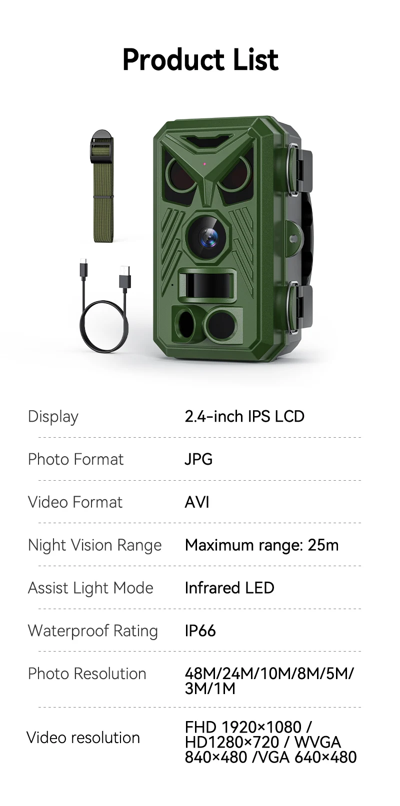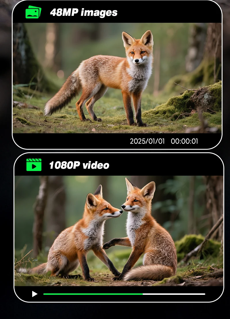 - 4K Resolution (48MP Interpolated): Capture stunning photos and crisp videos that reveal every detail of the animal's fur, horns, or behavior.