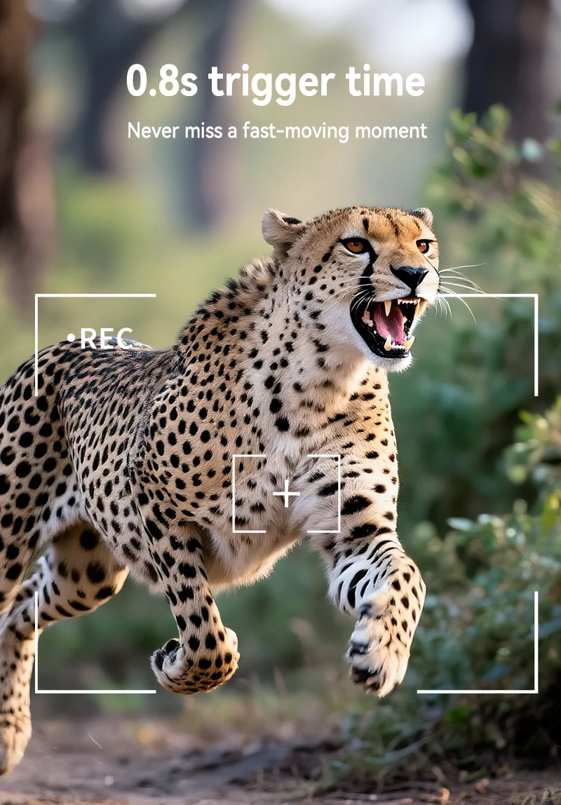 - Ultra-fast 0.8s trigger: With one of the fastest activation times on the market, the camera reacts almost instantly to movement, ensuring you capture the animal in the frame, not just its shadow.