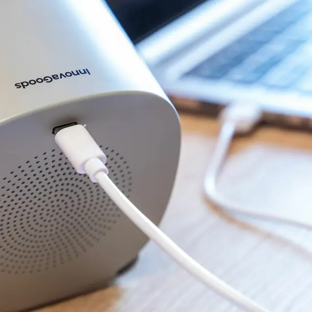 The InnovaGoods Souwis Wireless Charging Speaker with LED is a 4-in-1 gadget that simplifies and beautifies your workspace or bedside table. It combines in a single elegant device a fast wireless charger (up to 10W) , a 5W Bluetooth 5.1 speaker , an adjustable LED flashlight (warm or cool light) , and a practical stand for your cell phone (horizontal or vertical).