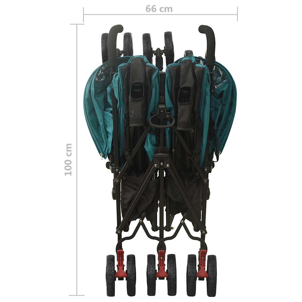 Green Steel Twin Stroller | Practical, Adjustable, and Easy to Transport