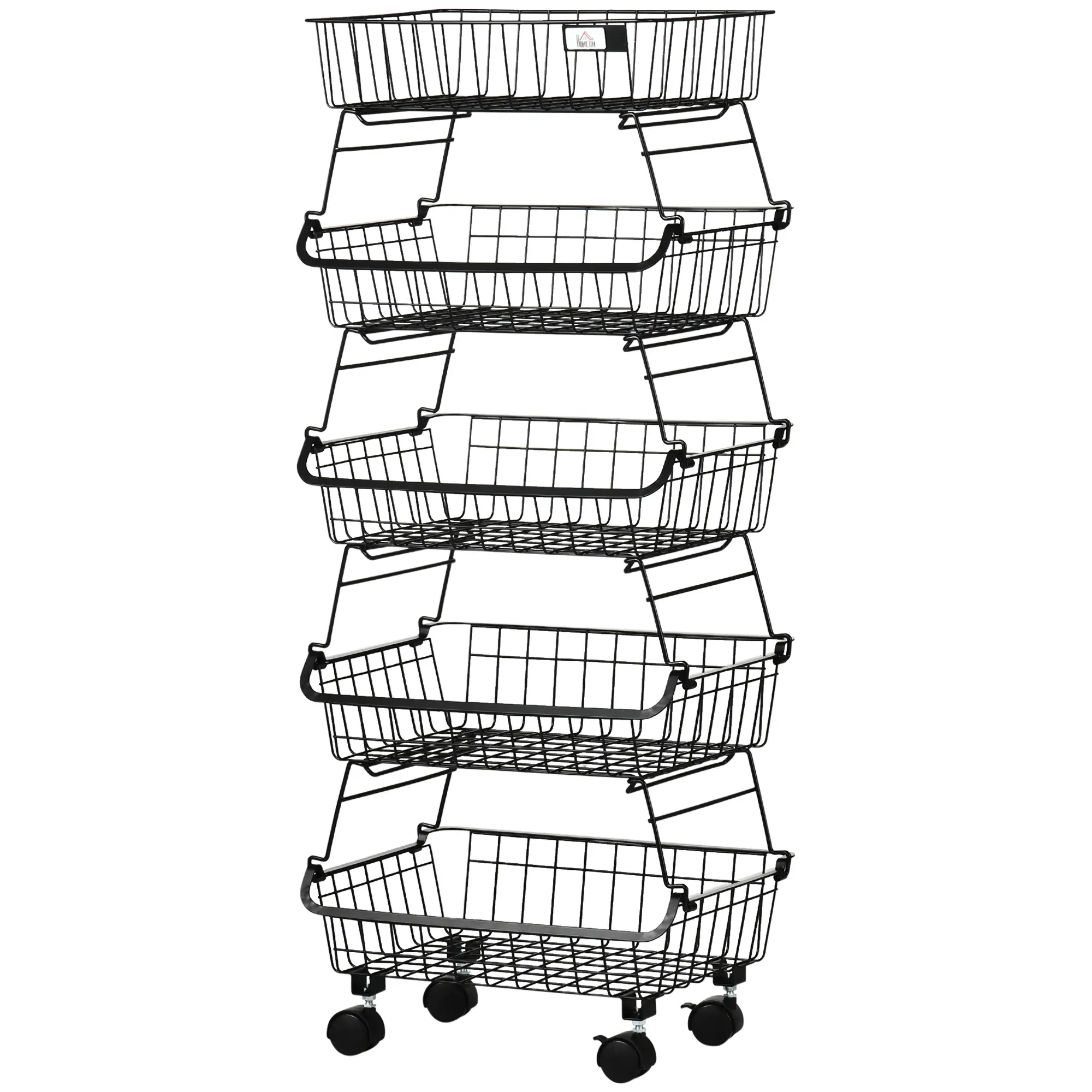 4-Tier Organizer Cart with Wheels and Brake | Stackable Multipurpose Fruit Basket for Kitchen, Bathroom, or Bedroom | Black Steel 97cm