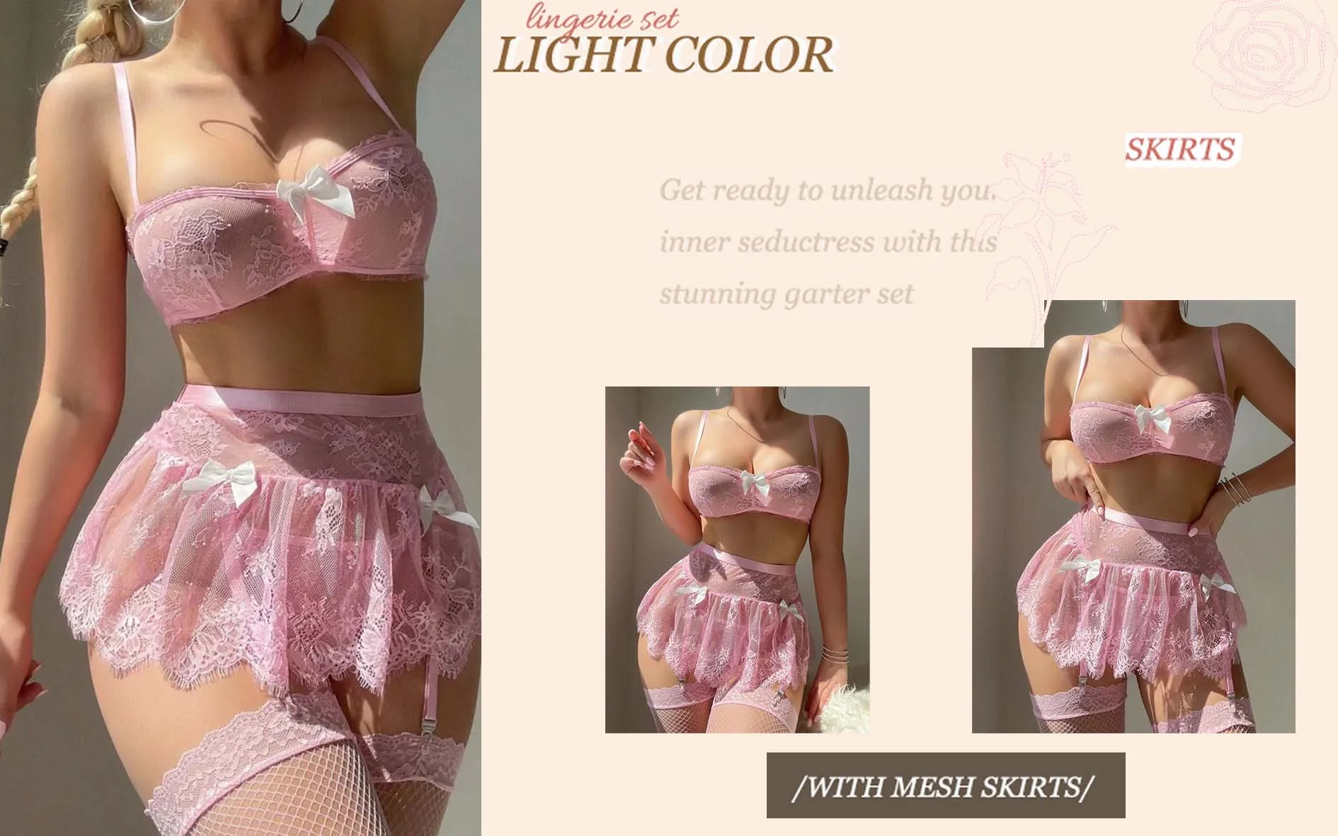 - Complete 3-in-1 Set: Includes a strapless bandeau top , a flowing tulle skirt , and matching thong panties , offering a coordinated and complete look.