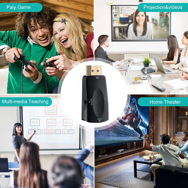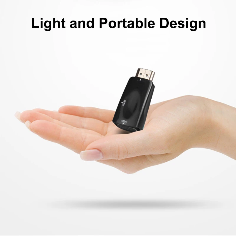 The compact-designed portable Moread HDMI-Compatible to VGA adapter connects a computer, desktop, laptop, or other devices with HDMI-Compatible port to a monitor, projector, HDTV, or other devices with VGA port; Tuck this lightweight gadget into your bag or pocket to do a business presentation with your laptop and projector, or extend your desktop screen to a monitor or TV