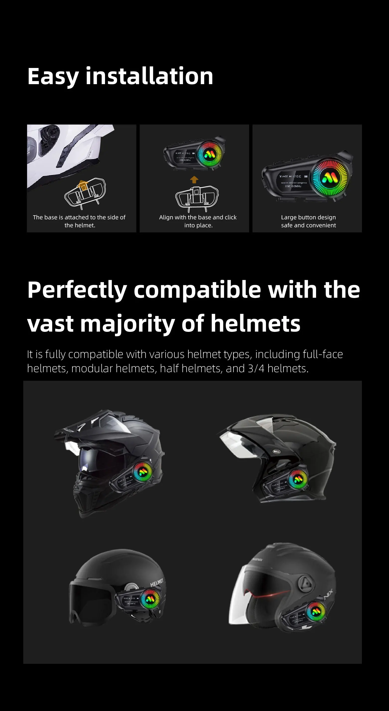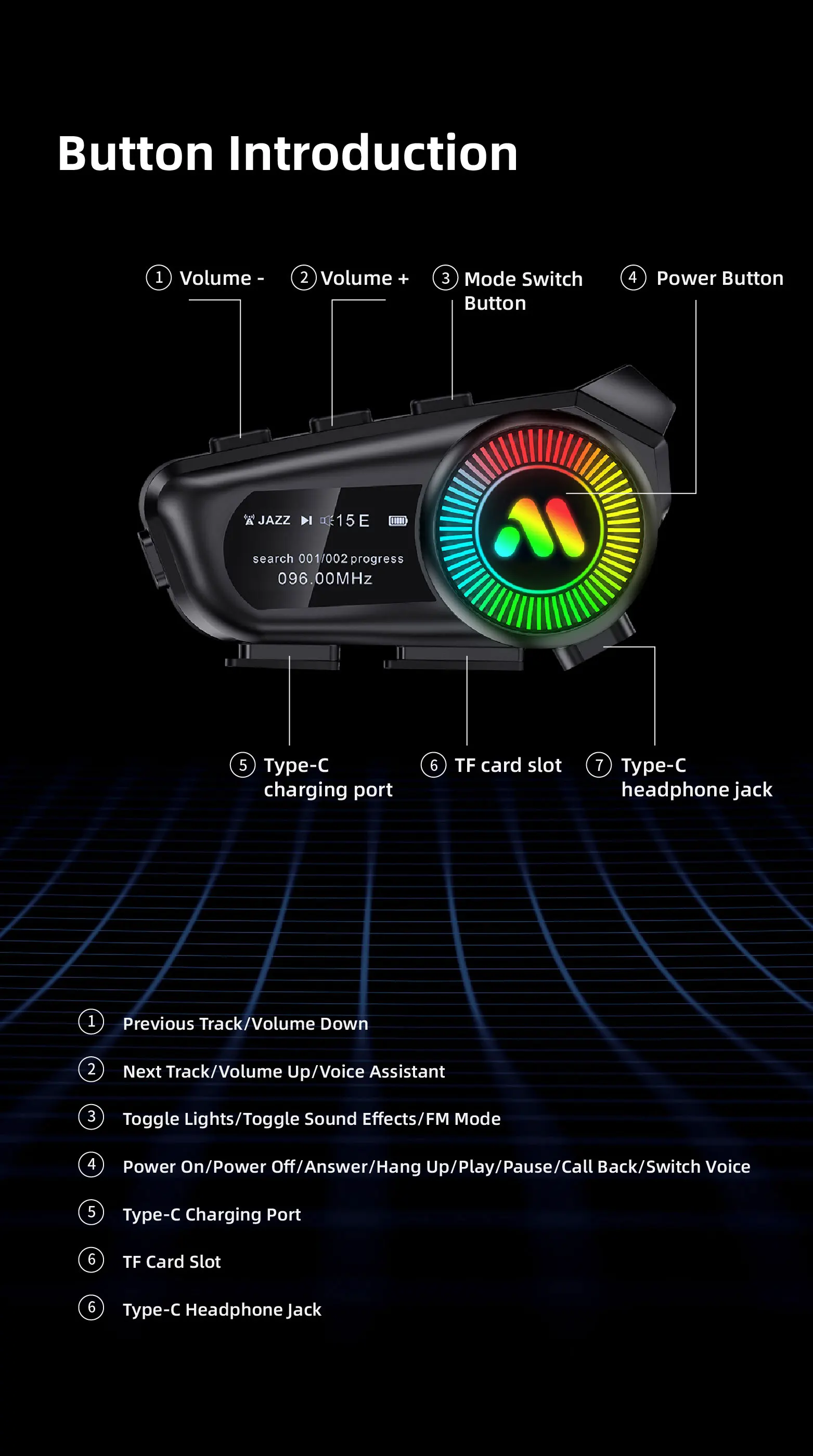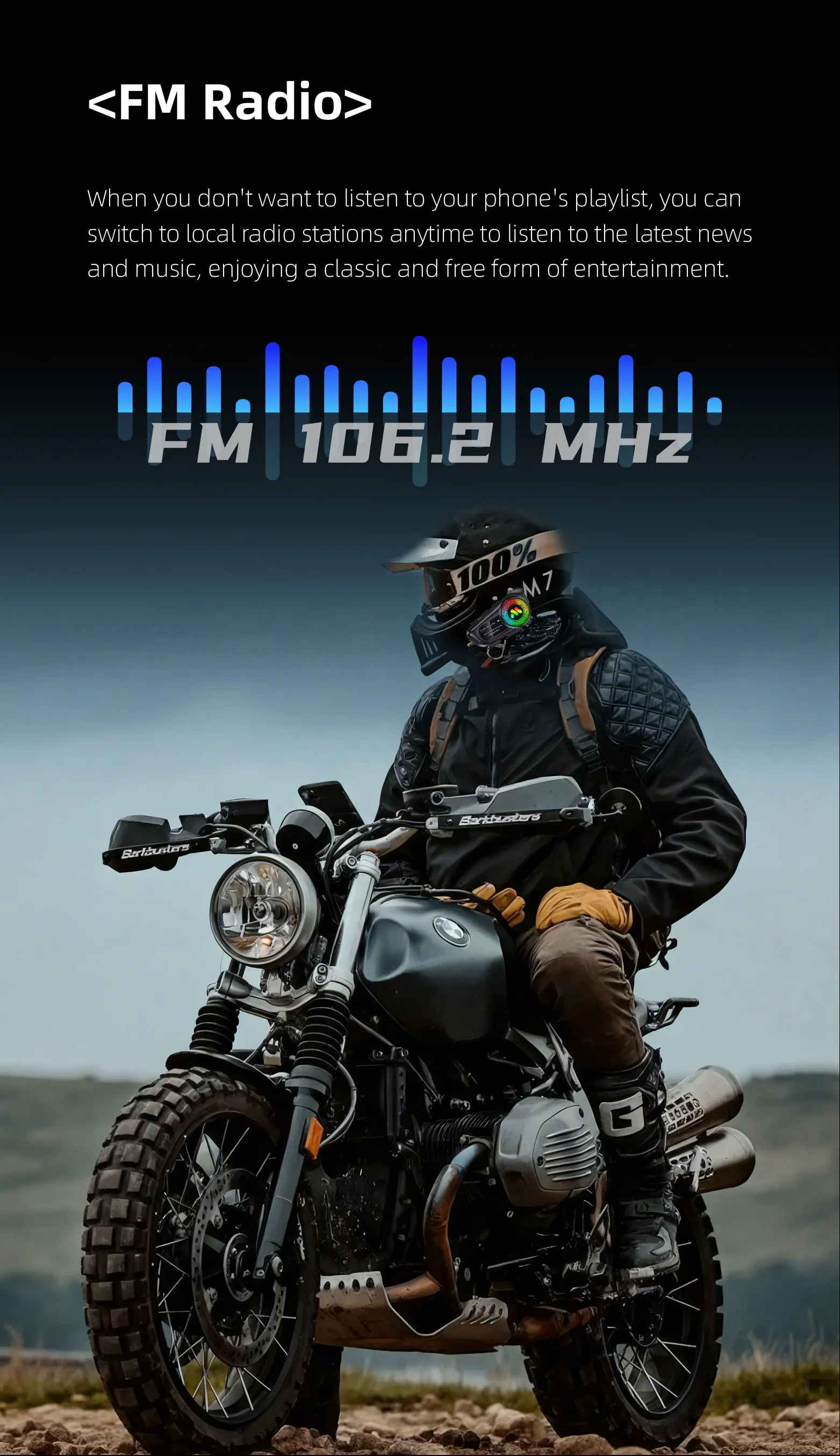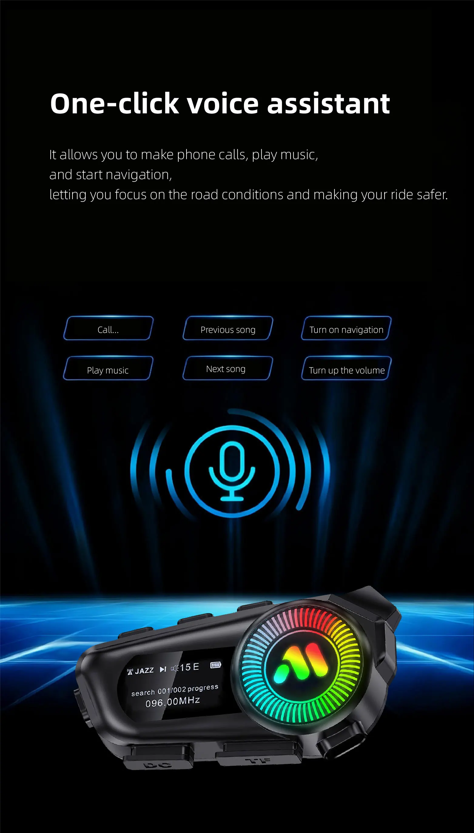 Mantenha-se conectado e entretido durante as suas viagens com o intercom Bluetooth para capacete R1, equipado com tecnologia Bluetooth 6.0 para uma ligação estável e clara. Este intercom Bluetooth oferece múltiplas funcionalidades, incluindo rádio FM, chamadas em alta-voz, reprodução de música estéreo via Bluetooth ou cartão TF, e suporte para navegação GPS com indicações de voz. O ecrã LCD mostra o estado da ligação e o nível da bateria, enquanto a tecnologia DSP de cancelamento de eco e redução de ruído garante uma comunicação cristalina mesmo a velocidades até 120 km/h. Com uma autonomia de até 10 horas em chamadas e 300 horas em standby, este intercom Bluetooth inclui microfones ajustáveis para capacetes modulares, integrais ou abertos, e é resistente à água. Ideal para motociclistas que procuram segurança, conveniência e entretenimento na estrada.