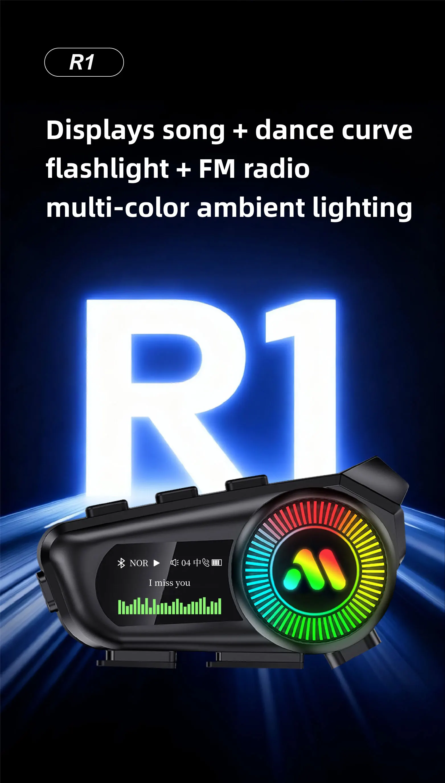 Intercom Bluetooth para Capacete R1 | Bluetooth 6.0, Rádio FM e Display LED