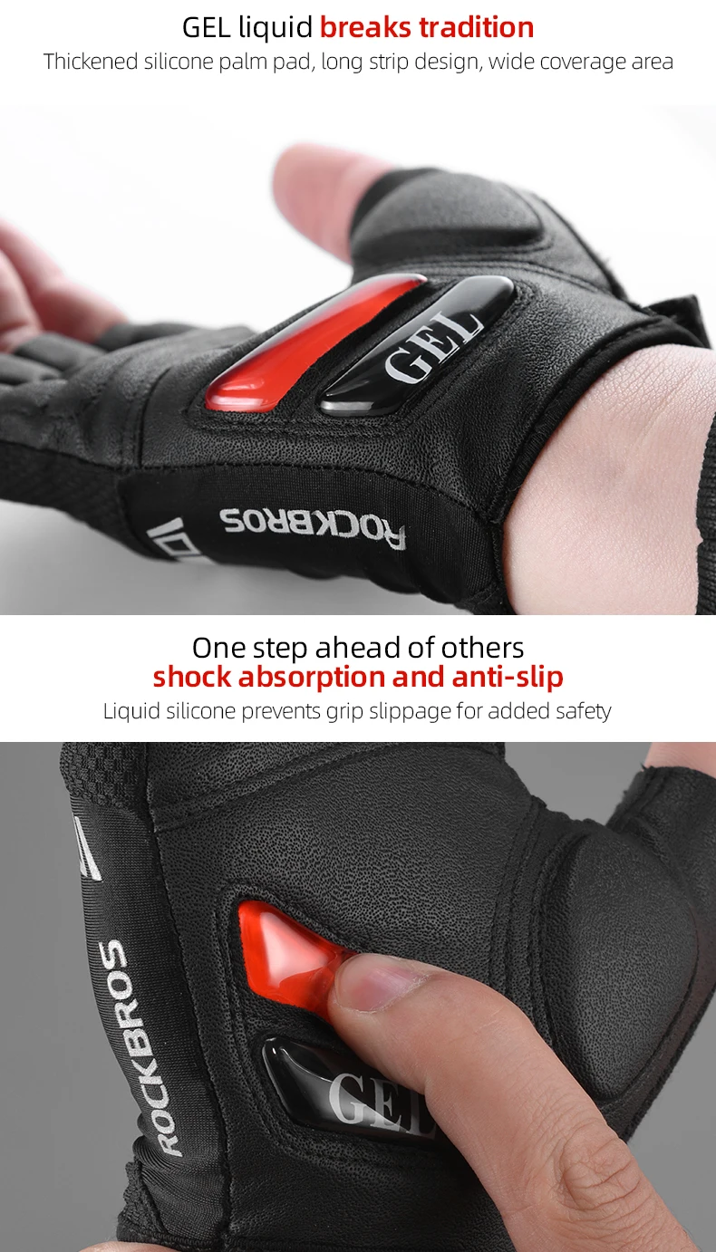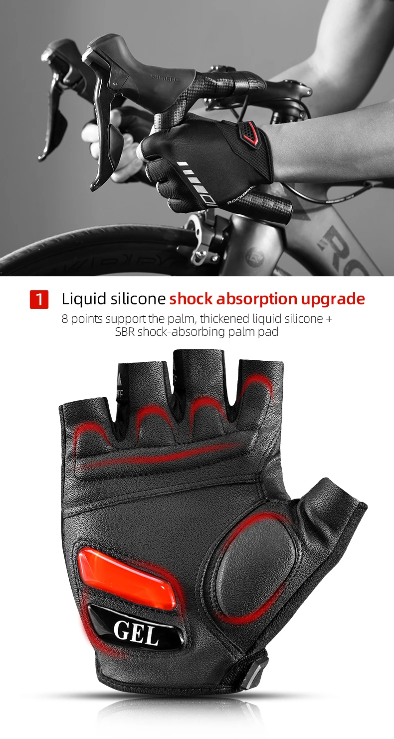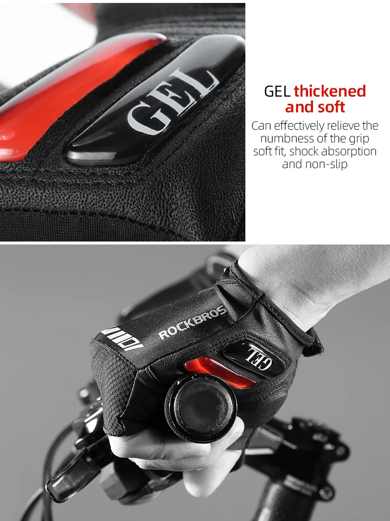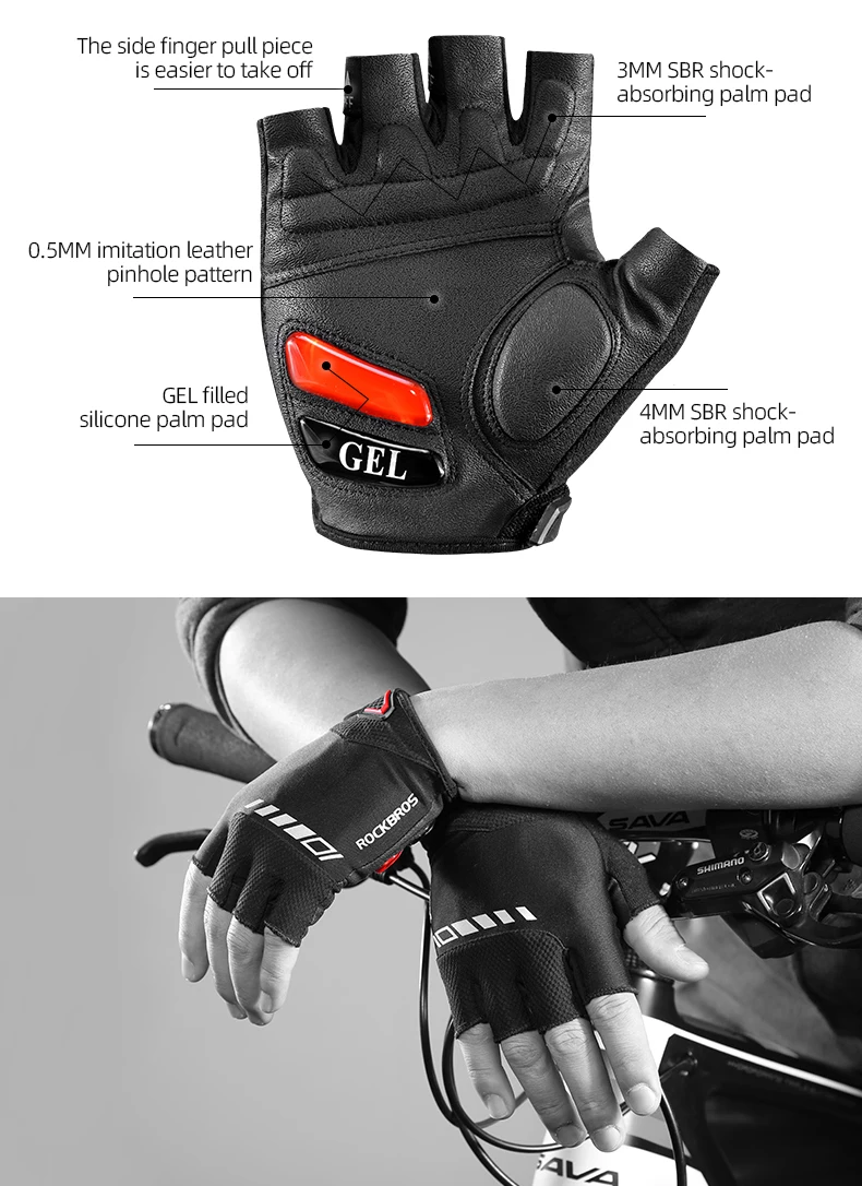 Luvas de Ciclismo Meia-Dedo ROCKBROS S143-BK - Palma com Gel SBR, Antiderrapante, Respiráveis, Unissexo