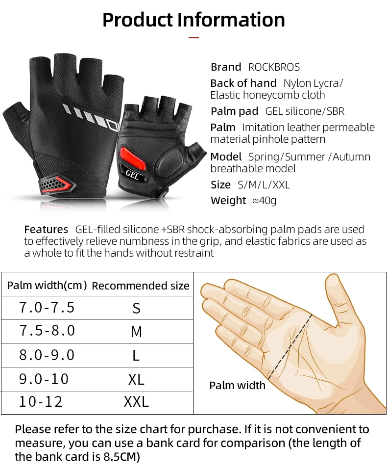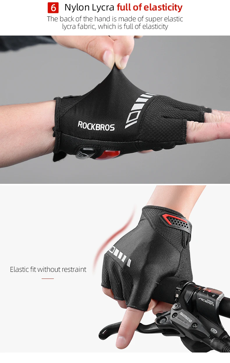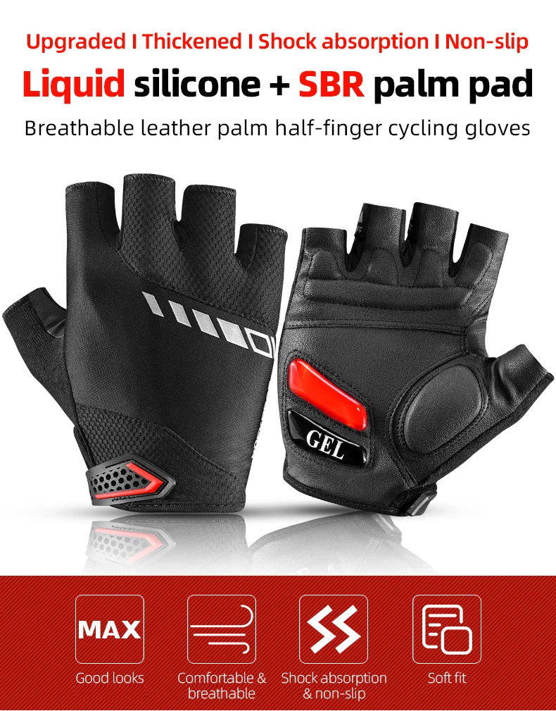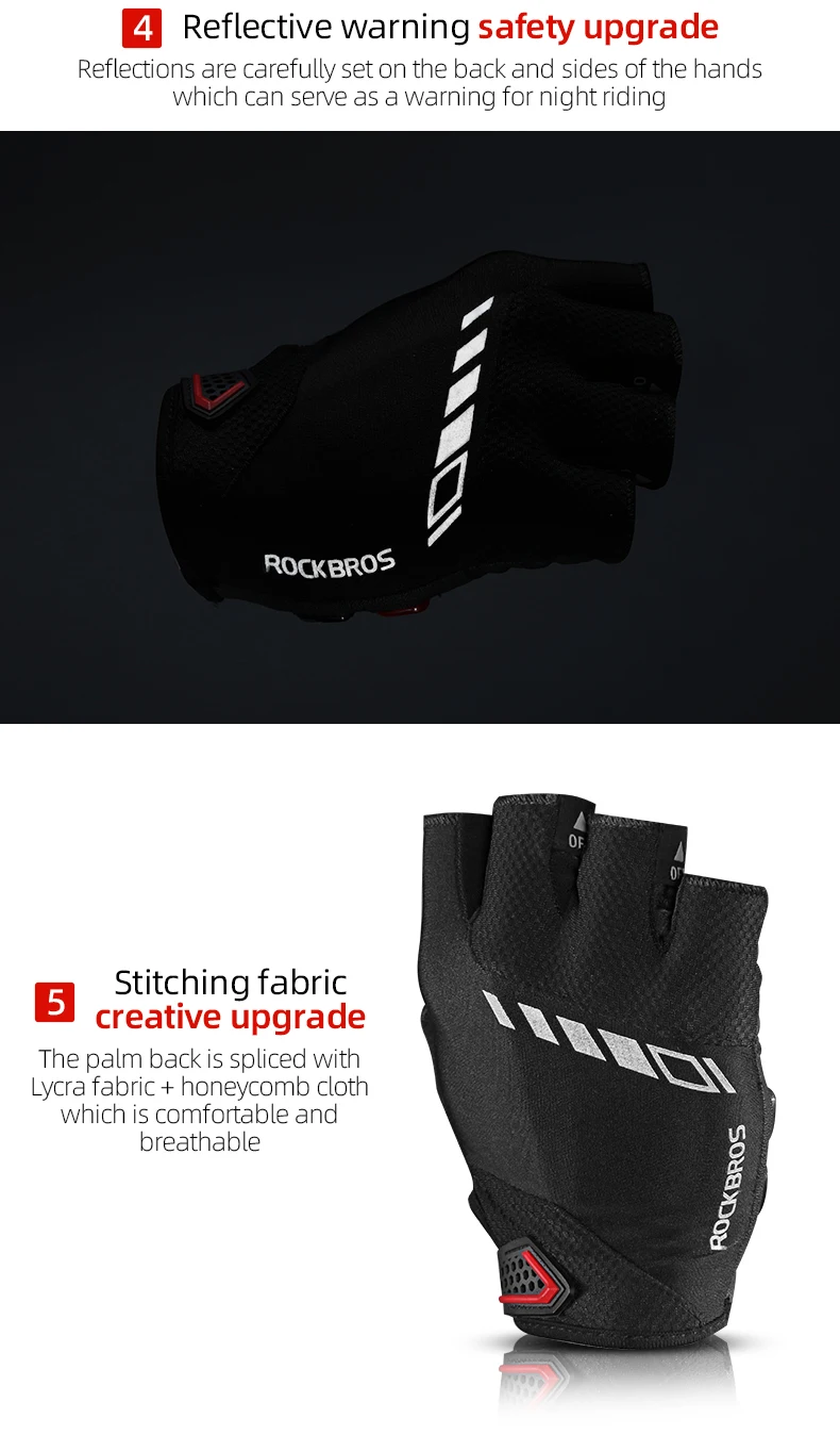 Luvas de Ciclismo Meia-Dedo ROCKBROS S143-BK - Palma com Gel SBR, Antiderrapante, Respiráveis, Unissexo
