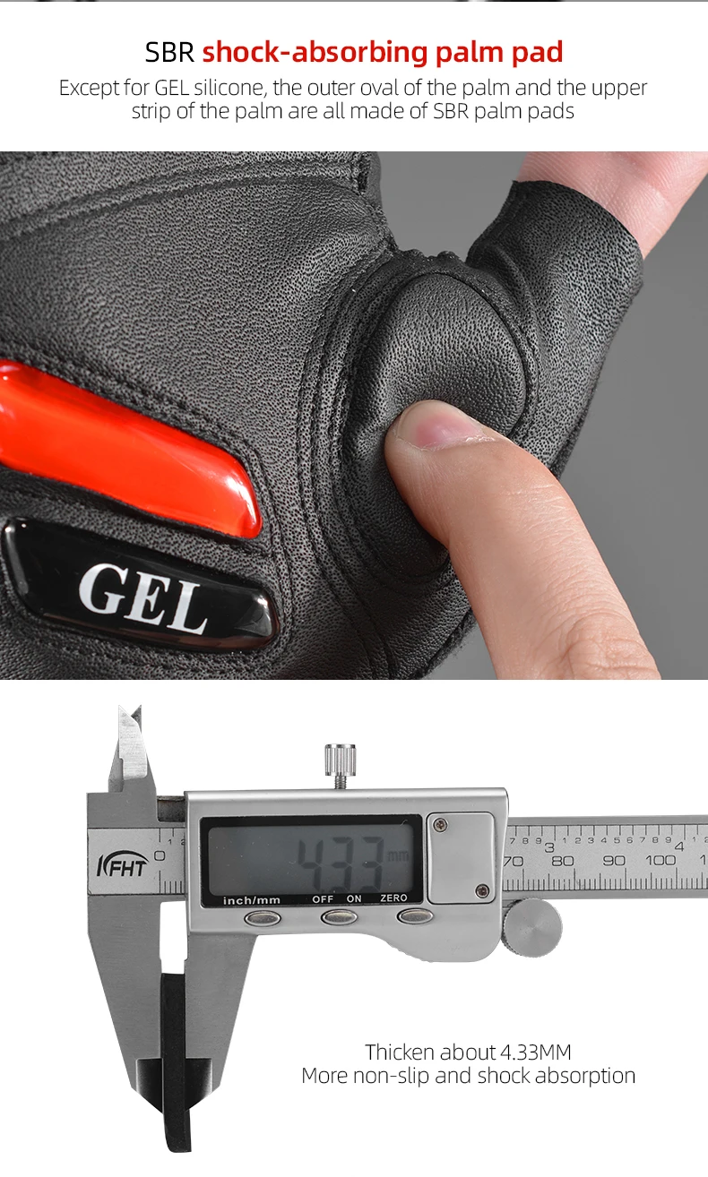- Alívio Eficaz: Almofada de gel SBR na palma para absorver vibrações e reduzir a fadiga muscular.