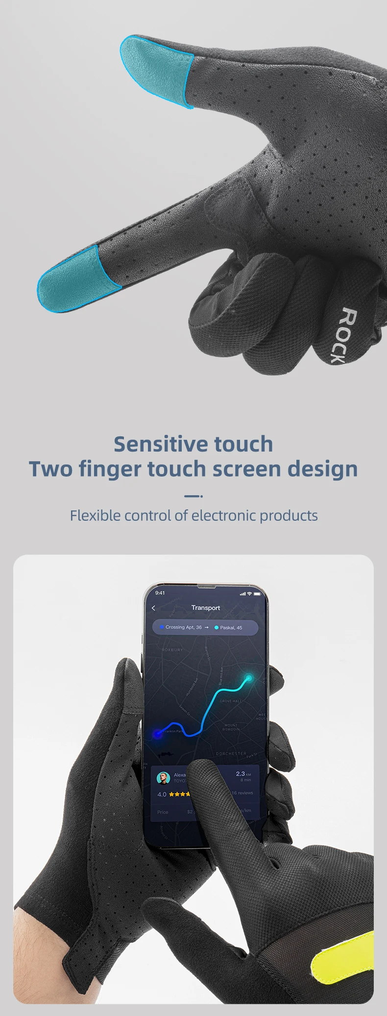 Stay cool, connected, and visible with the ROCKBROS S299 Cycling Gloves . Designed for the warm weather of spring and summer , these full-finger gloves stand out with multiple strategic ventilation openings on the back of the hand, which promote constant airflow to prevent overheating and excessive sweating during your MTB or road rides.