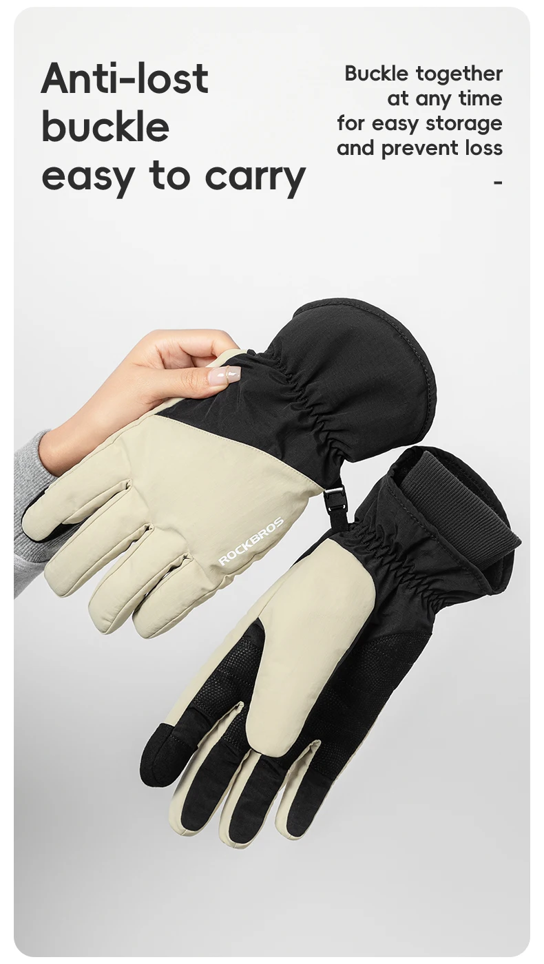 Luvas Térmicas Inverno ROCKBROS S378 | Touch Screen, Isolamento Térmico para Ski, Ciclismo e Moto