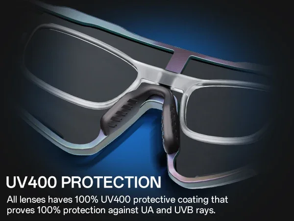 Elevate your athletic performance with KAPVOE cycling glasses featuring nano-polarized lenses, designed to offer advanced protection and exceptionally clear vision during cycling, running, and outdoor activities. These cycling glasses feature new technology nano lenses that improve contrast, optical clarity, and visual detail, ensuring vibrant colors and enhanced terrain perception. With UV400 protection, they block 99.99% of UVA and UVB rays, eliminating glare and reducing eye fatigue. The hydrophilic rubber nose bridge keeps the cycling glasses firmly in place even in sweat or rain, while the ergonomic design with non-slip and flexible temples provides a comfortable fit and a wide field of vision. Lightweight, impact and scratch resistant, and unisex, these cycling glasses are the ideal choice for those seeking cutting-edge technology, durability, and style in any adventure.