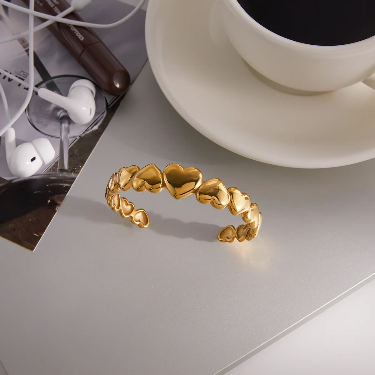 Intertwined Heart Bracelet with Gradient Opening | Women's Stainless Steel Bracelet with 18K Gold PVD Plating
