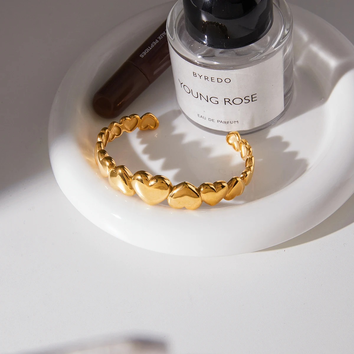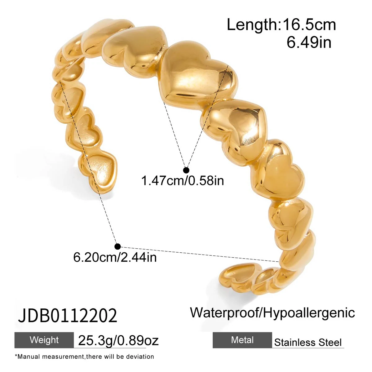Celebrate love and elegance with this Intertwined Heart Bracelet with Gradient Opening, a piece of jewelry that combines romantic symbolism and sophisticated design. Crafted from high-quality stainless steel and plated with 18K PVD gold, this bracelet features a delicate intertwined heart pattern with gradient openings that add lightness and a contemporary touch to the classic look.