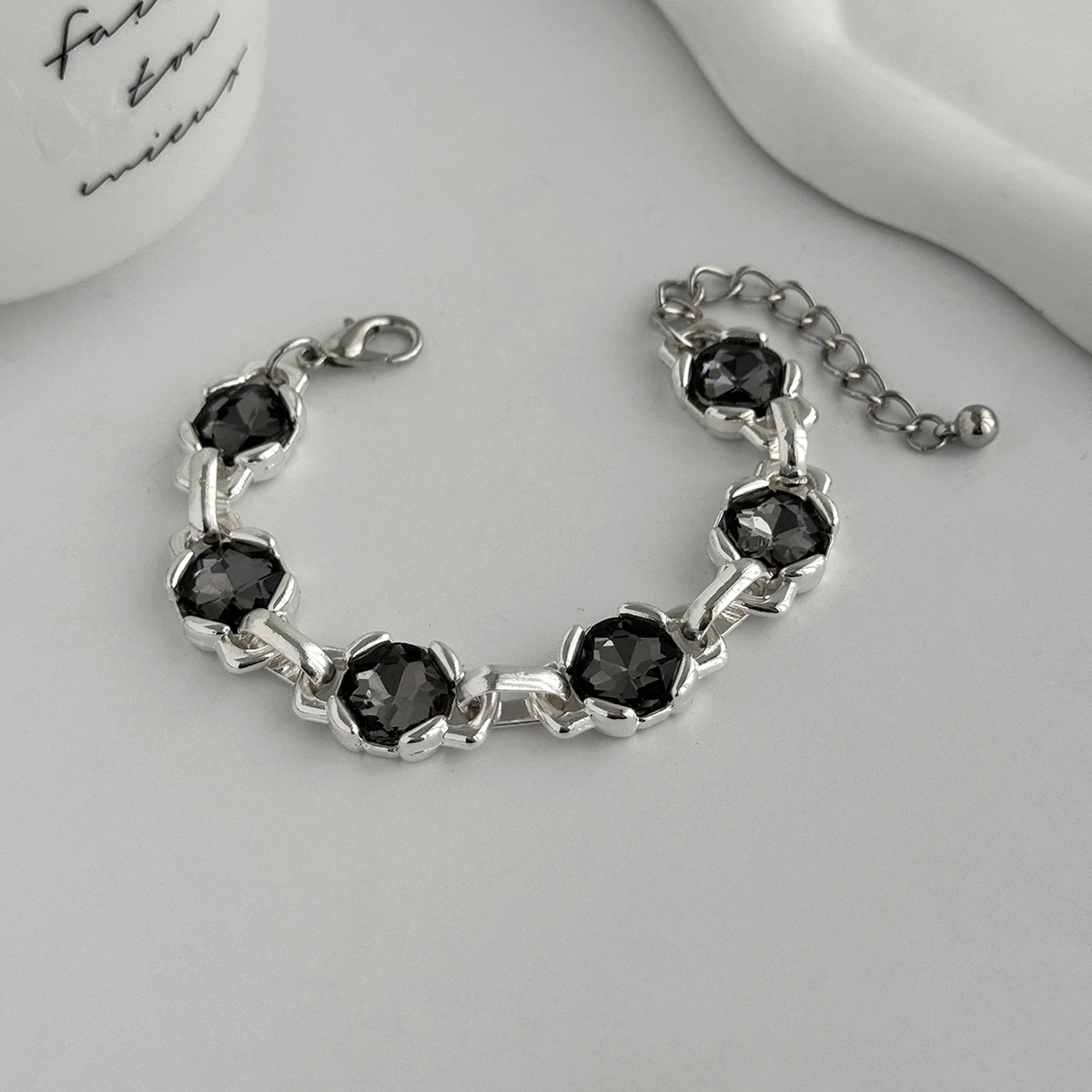 Pulseira Punk Irregular em Acrílico Preto com Strass | Pulseira de Mão Ajustável para Mulheres - Tendência 2026