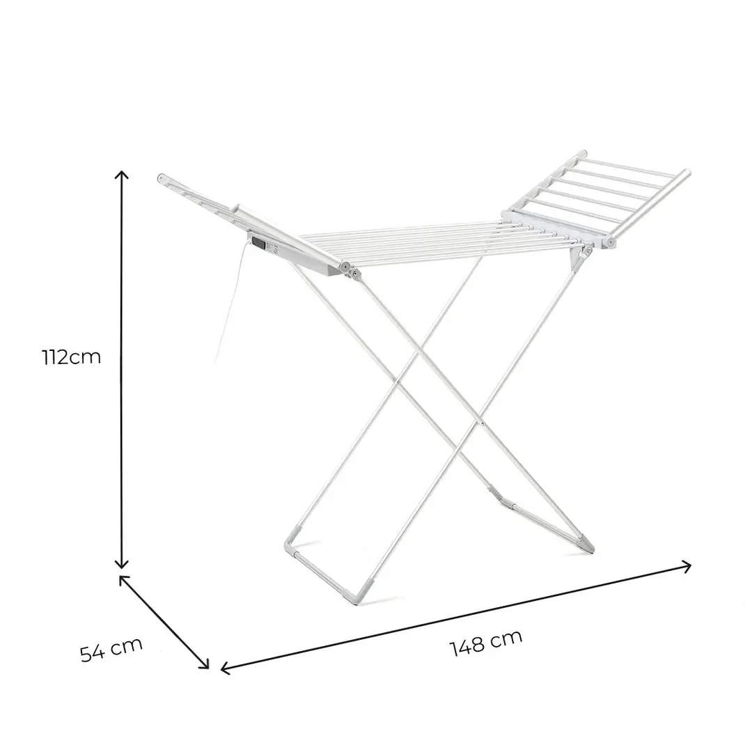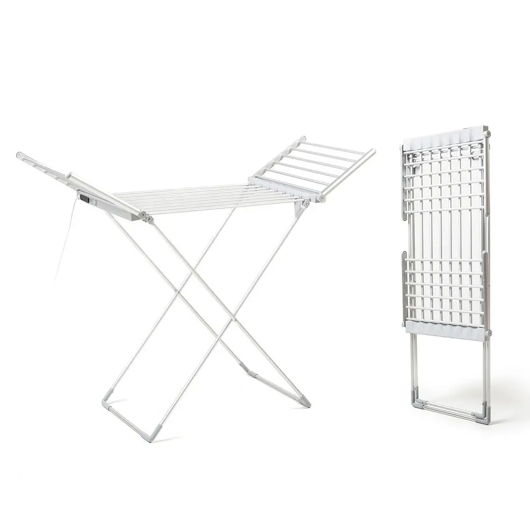 - Design Inteligente: Dobrável e portátil, com asa amovível para secar têxteis maiores. Ideal para espaços reduzidos.