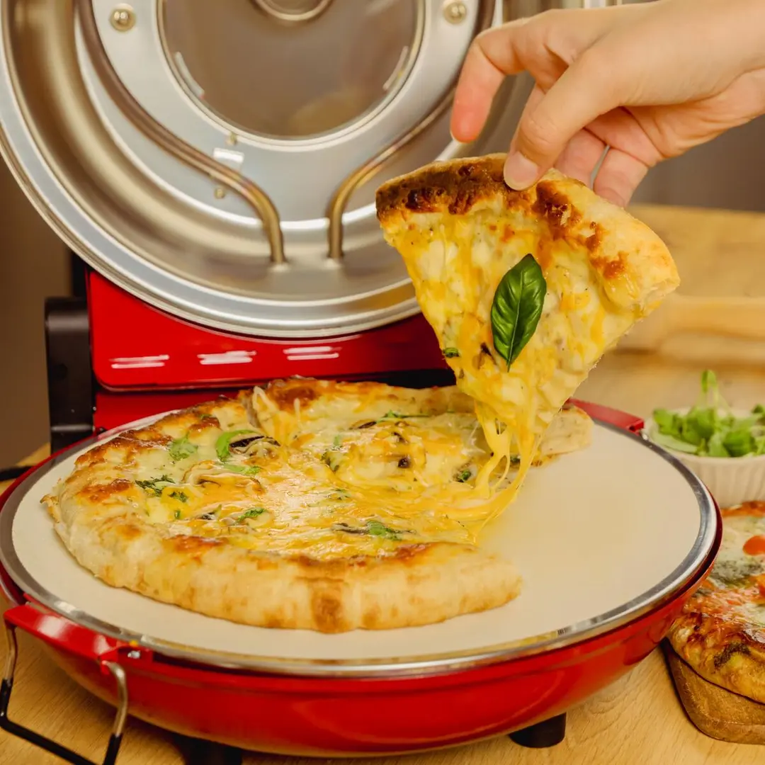 Com uma potência de 1200W e temperatura regulável, você tem o controlo total para assar a pizza perfeita, desde as margens mais finas e crocantes até às bordas mais altas e fofas. O temporizador e o indicador luminoso garantem precisão e facilitam a utilização.