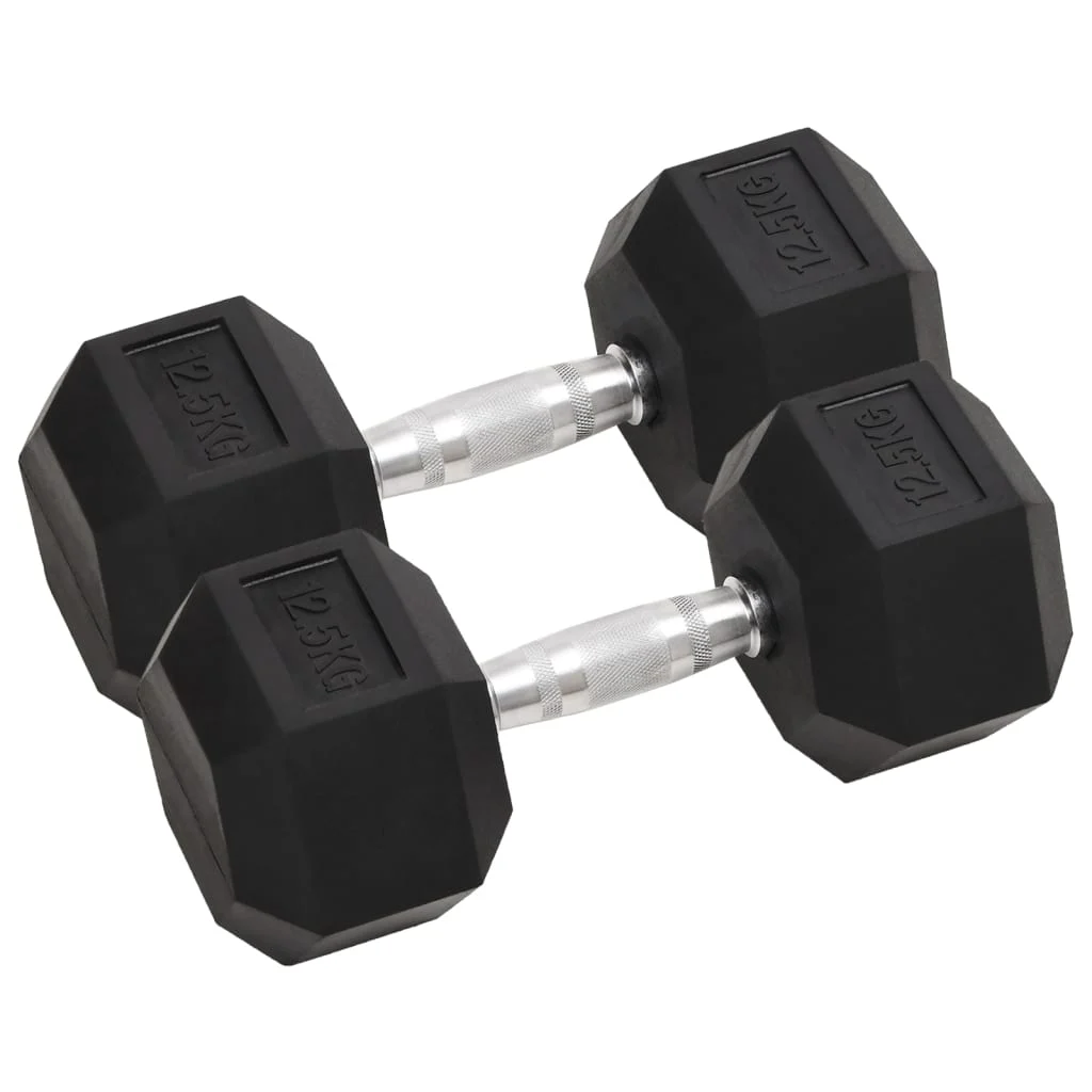 Halteres 2 Peças 25 kg Total vidaXL | Halteres Hexagonais em Ferro Fundido com Revestimento de Borracha