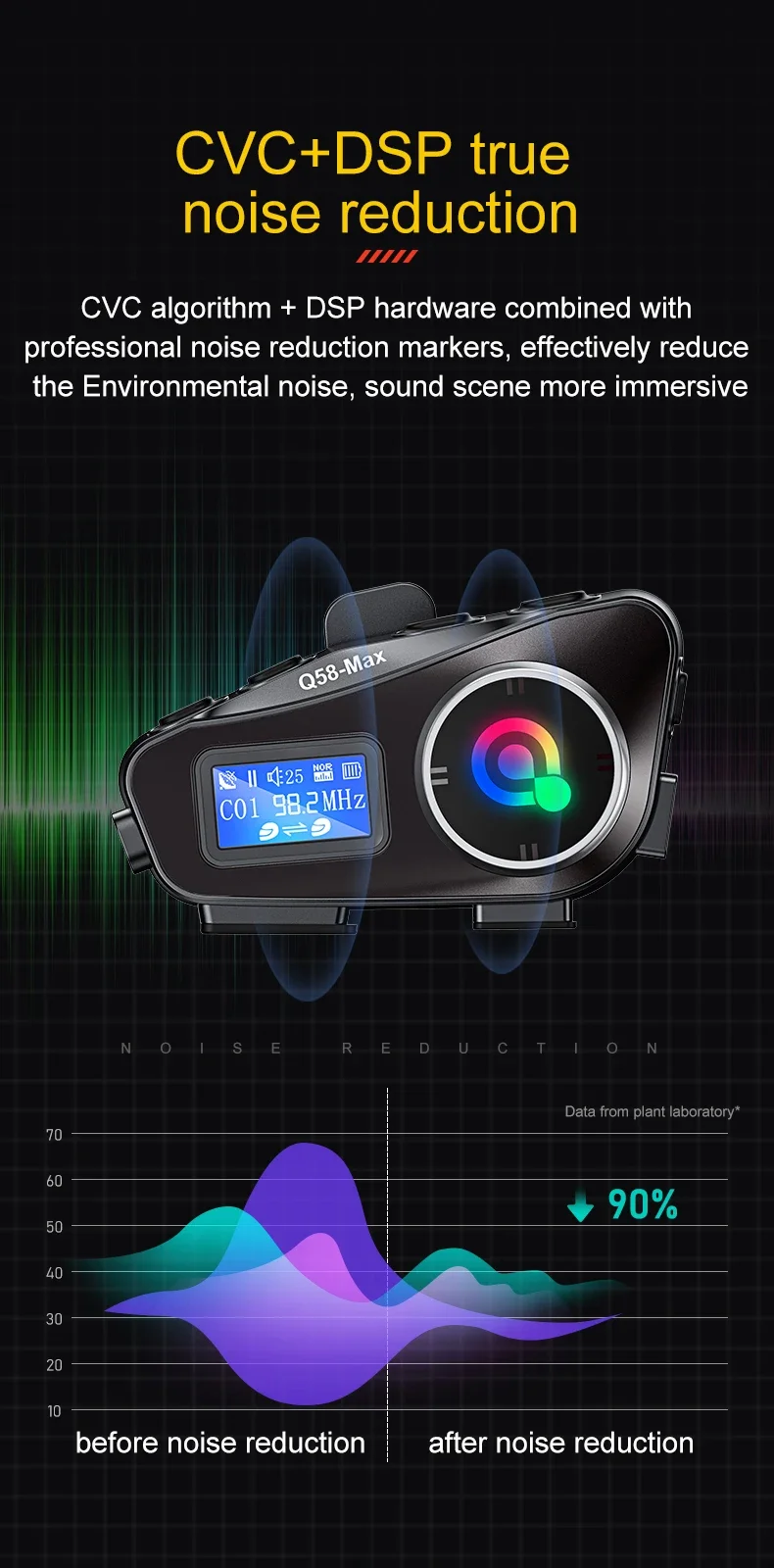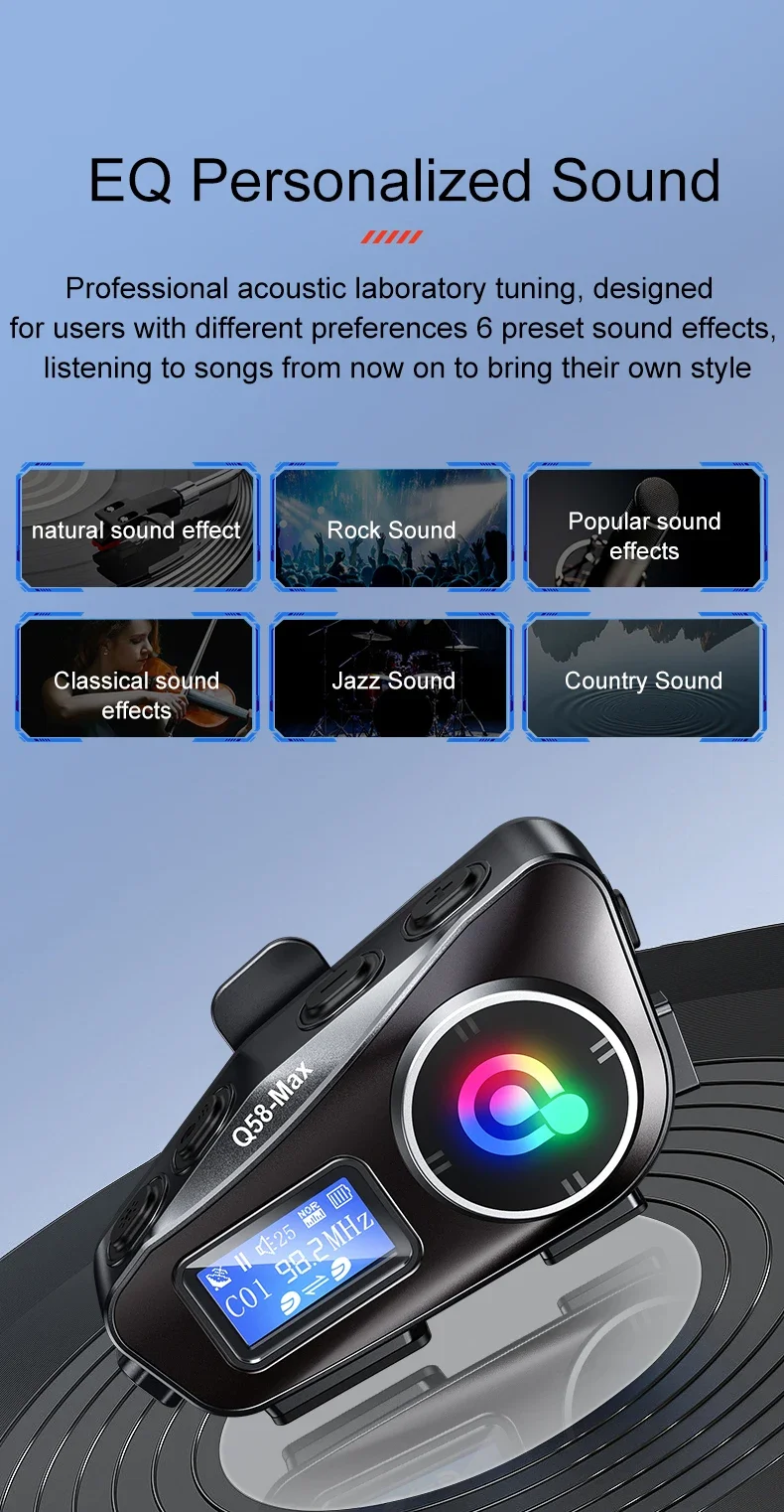 Intercom Bluetooth para Capacete Q58-MAX | Comunicação para 2 Motociclistas e Partilha de Música